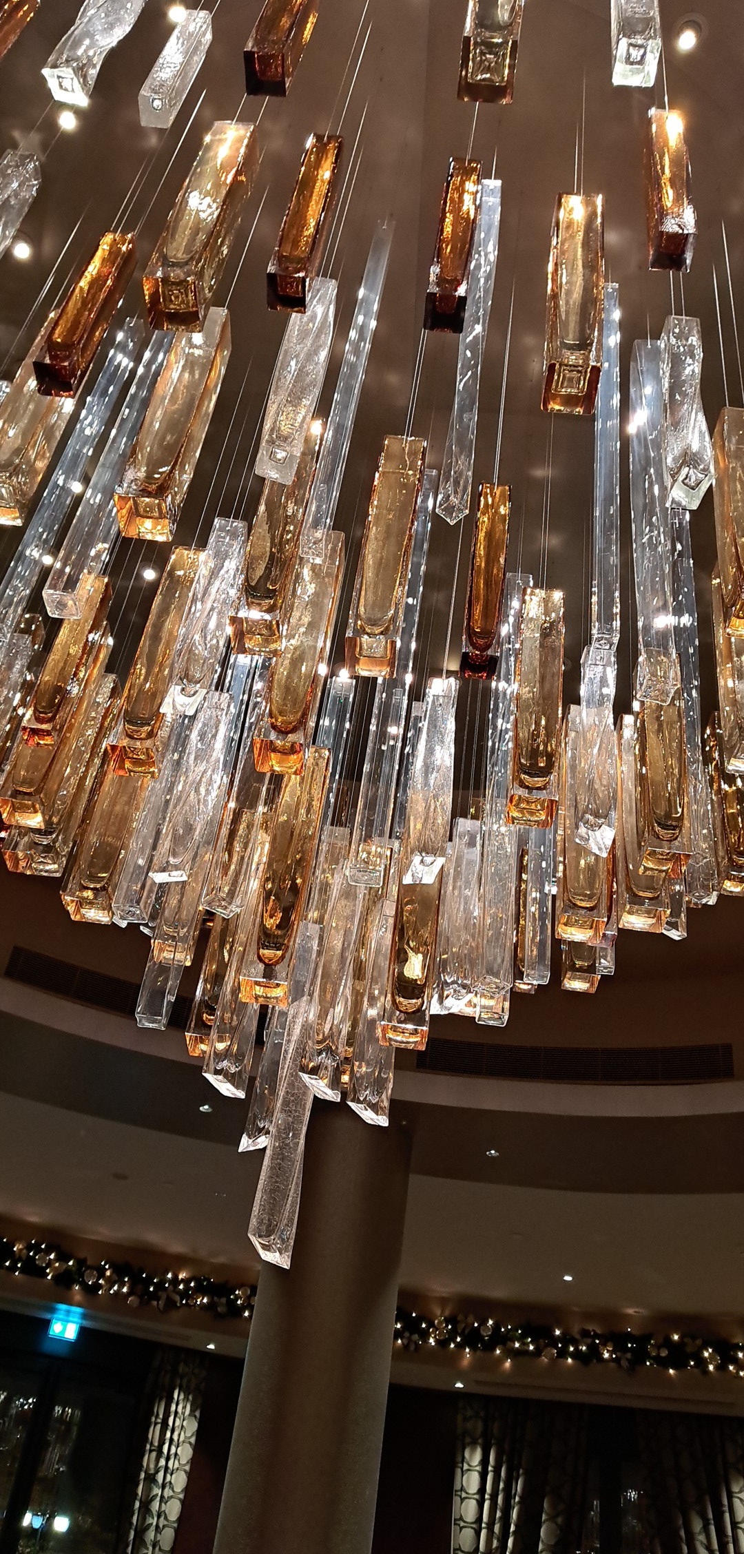 ❝ Pâtes, risottos et autres plats italiens proposés dans un restaurant élégant doté d'un chandelier gigantesque de forme géométrique. ❞