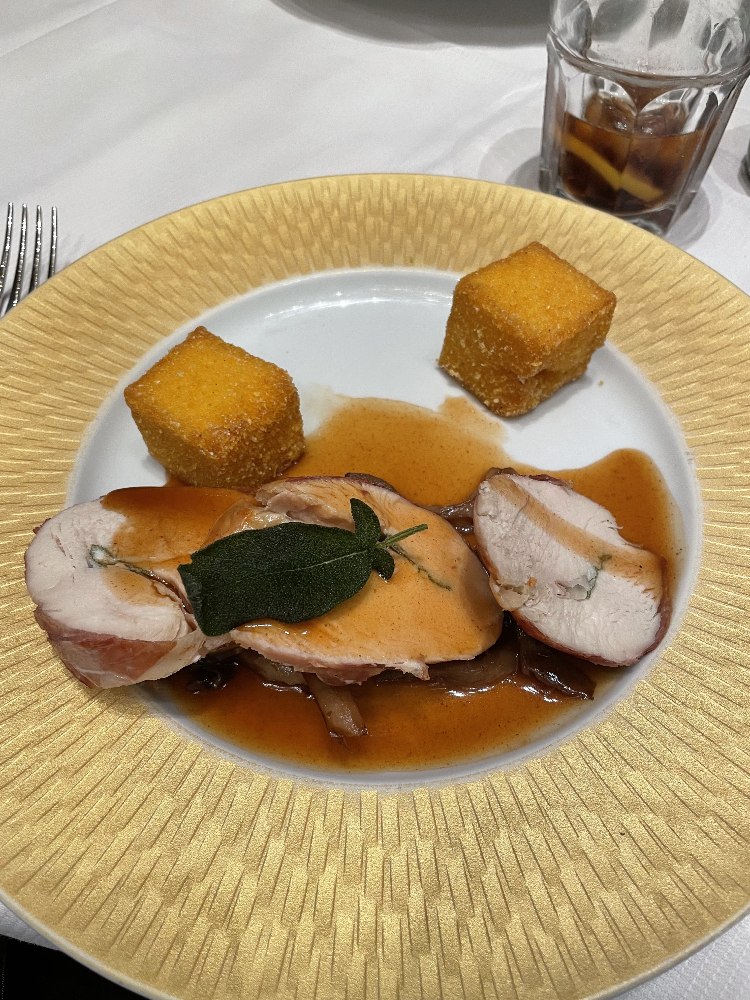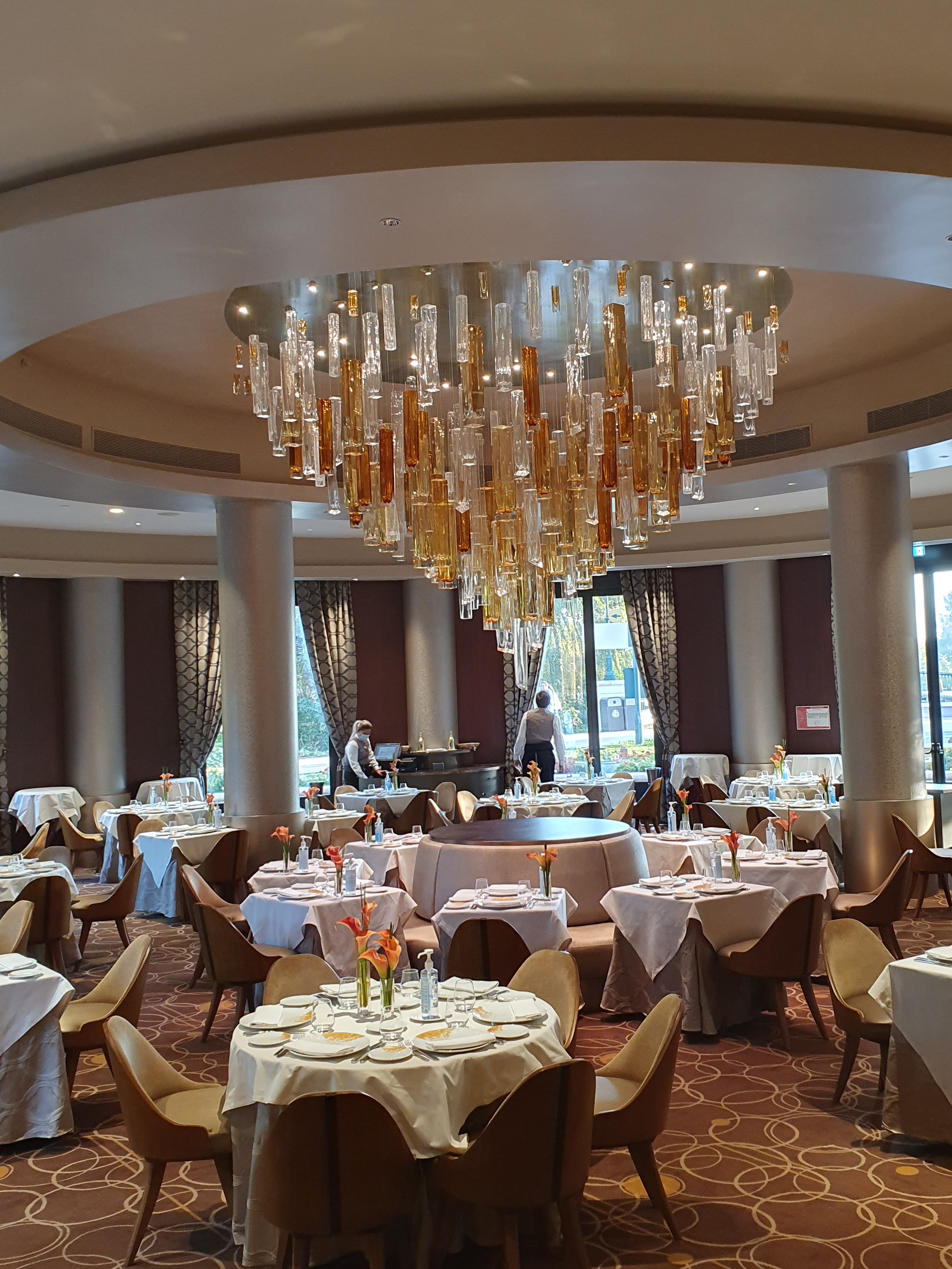 Repas très très bon et personnel très gentil et à l’écoute. Mais un gros bémol sur le service qui est beaucoup trop rapide, nous avons à peine le temps de finir l’entrée que le plat est déjà à table, même chose pour le dessert. Ce fut assez désagréable car nous n’avons pas eu le temps de digérer un minimum entre les services. Nous avons tout de même passé un bon moment et le cadre est magnifique avec ce lustre gigantesque.