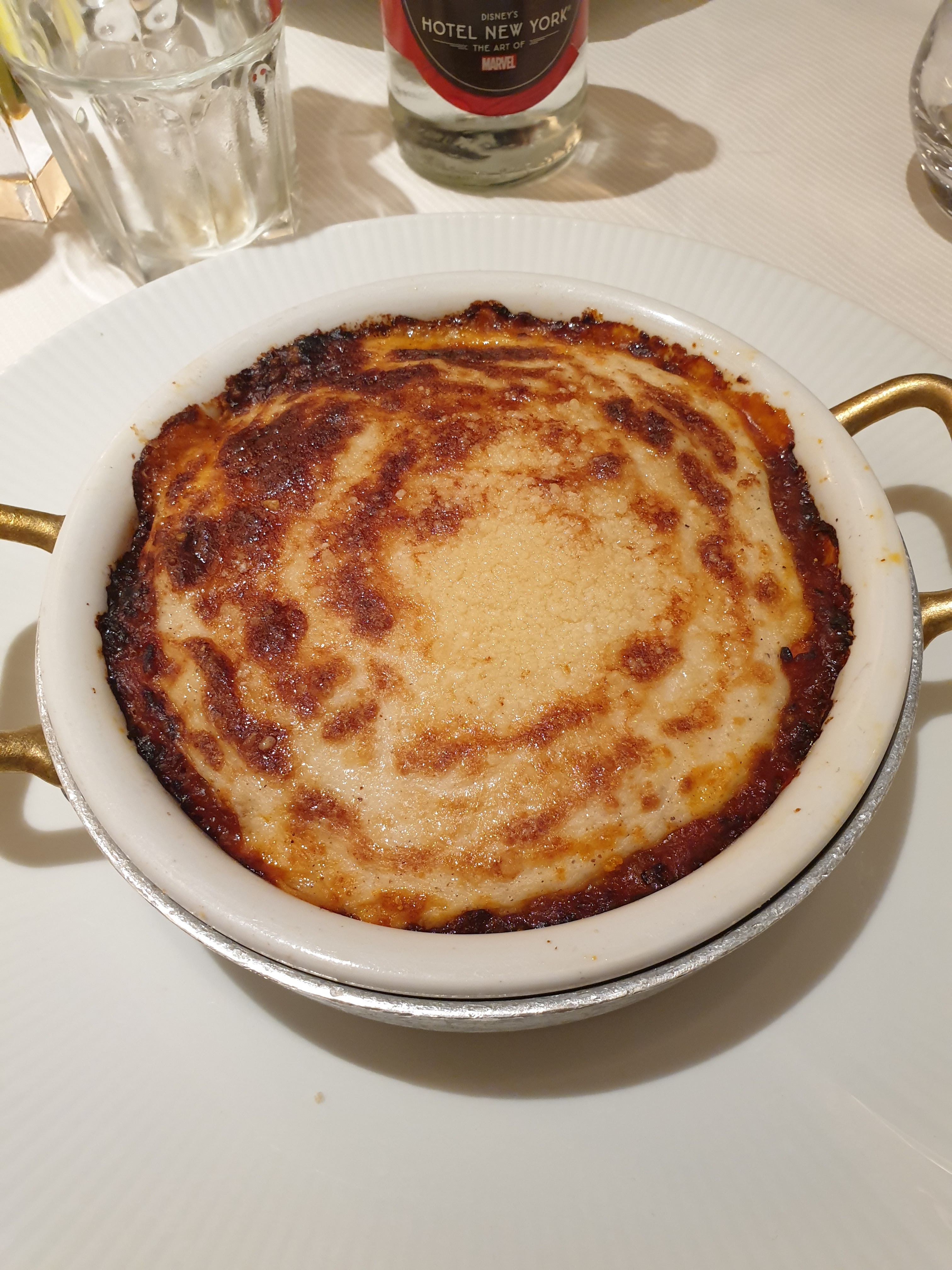 Seconde fois pour moi et toujours agréablement servi, un menu à 42€ ce qui reste abordable pour Disney et pour la qualité proposée dans un cadre sublime. Attention réservation obligatoire, je vous conseille les lasagne 😉