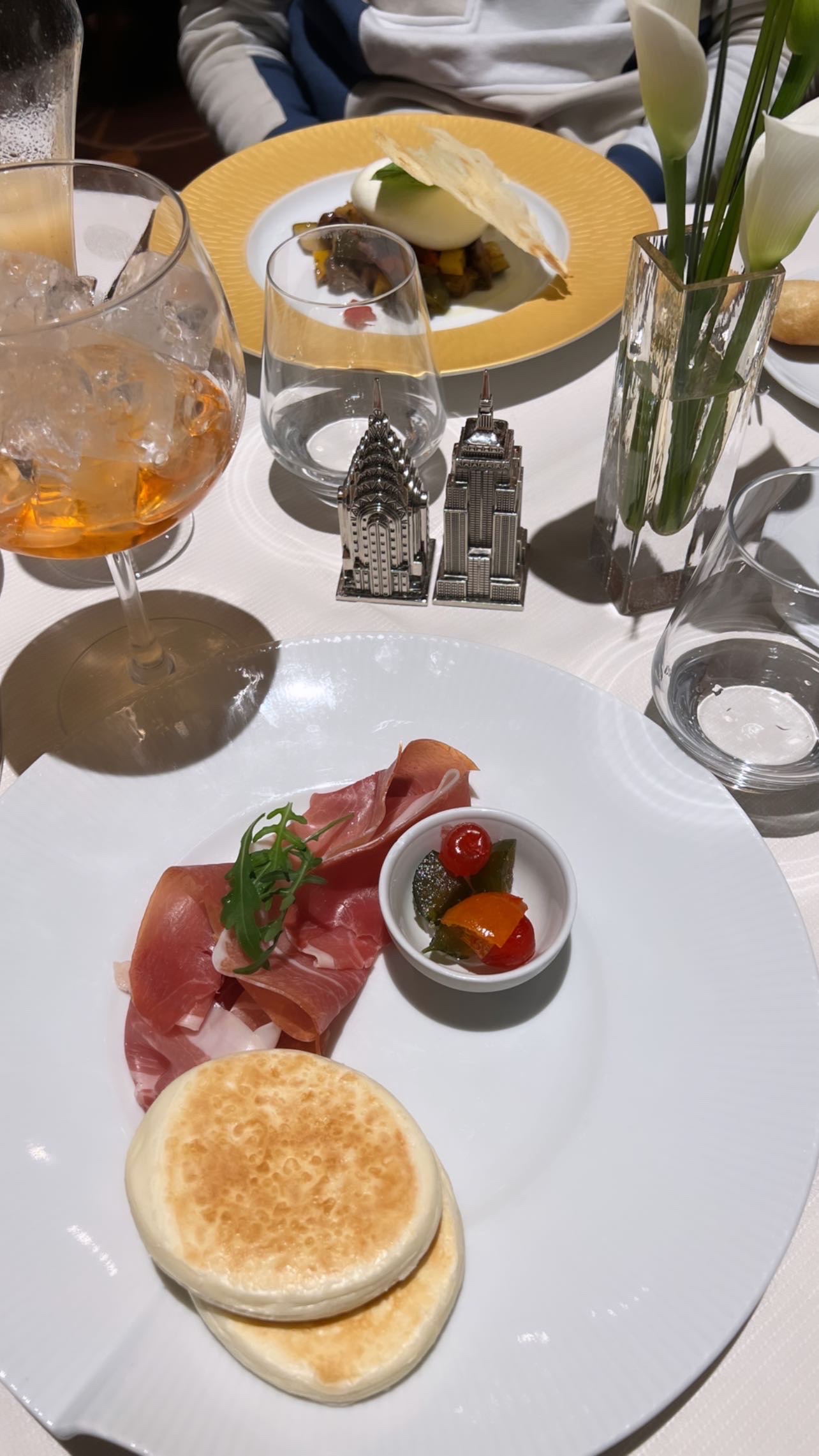 Nous avons eu une super expérience au restaurant Manhattan. Même si nous ne dormions pas à l’hôtel, nous voulions avoir l’impression d’être à l’hôtel New York. La nourriture était délicieuse, tout comme le vin mousseux Prosecco. Mathilde était notre serveur et elle était très serviable et professionnelle. Lorsque nous lui avons posé des questions sur cette belle vaisselle, elle a demandé à ses collègues où l'acheter en ligne. Très gentil de sa part.