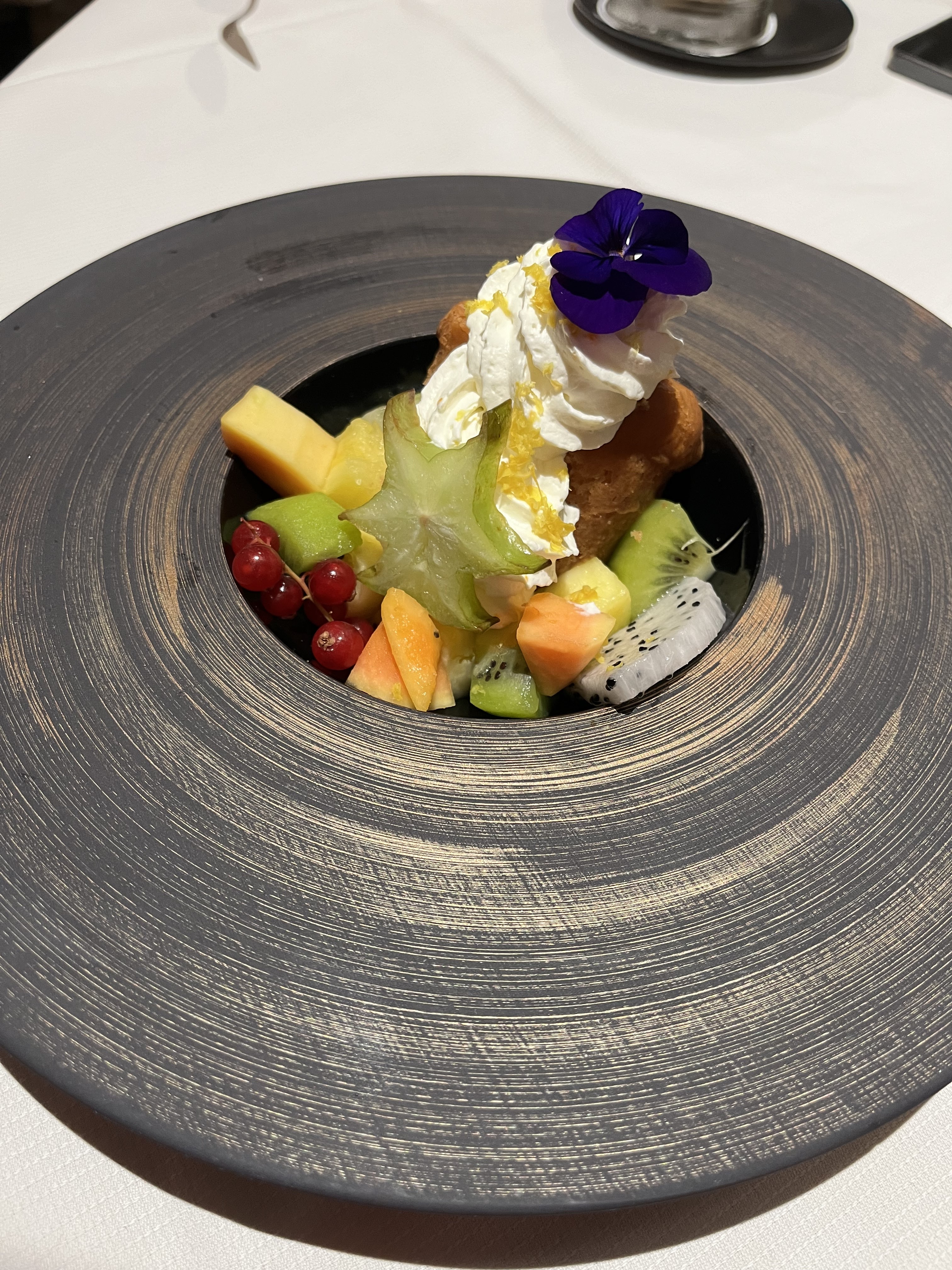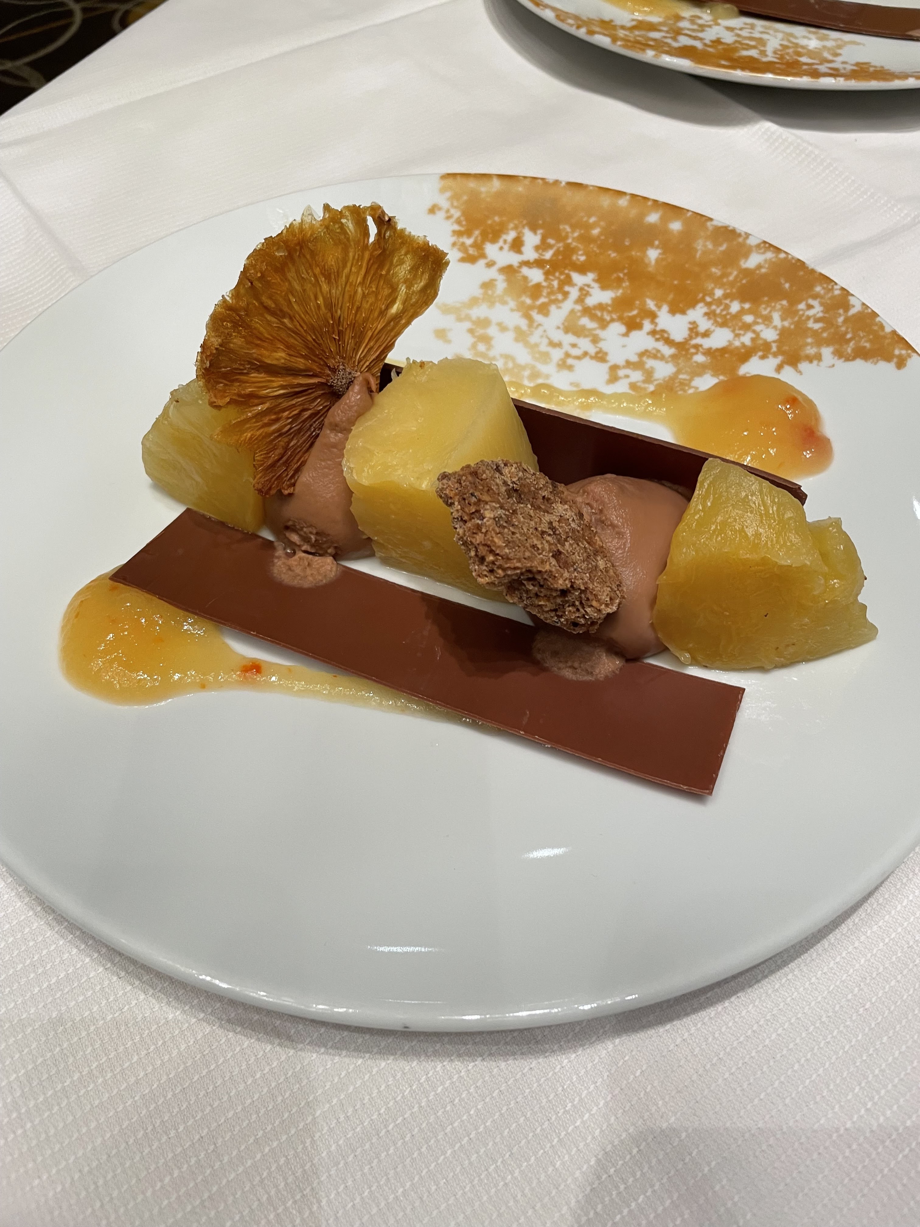 Un repas delicieux dans un cadre magnifique avec un service nickel ! Le dessert d'ananas, chocolat était juste exceptionnel, on a eu de l'umami ! Cependant, déception sur le baba au limoncello, trop fade et pas assez d'agrumes. Dommage