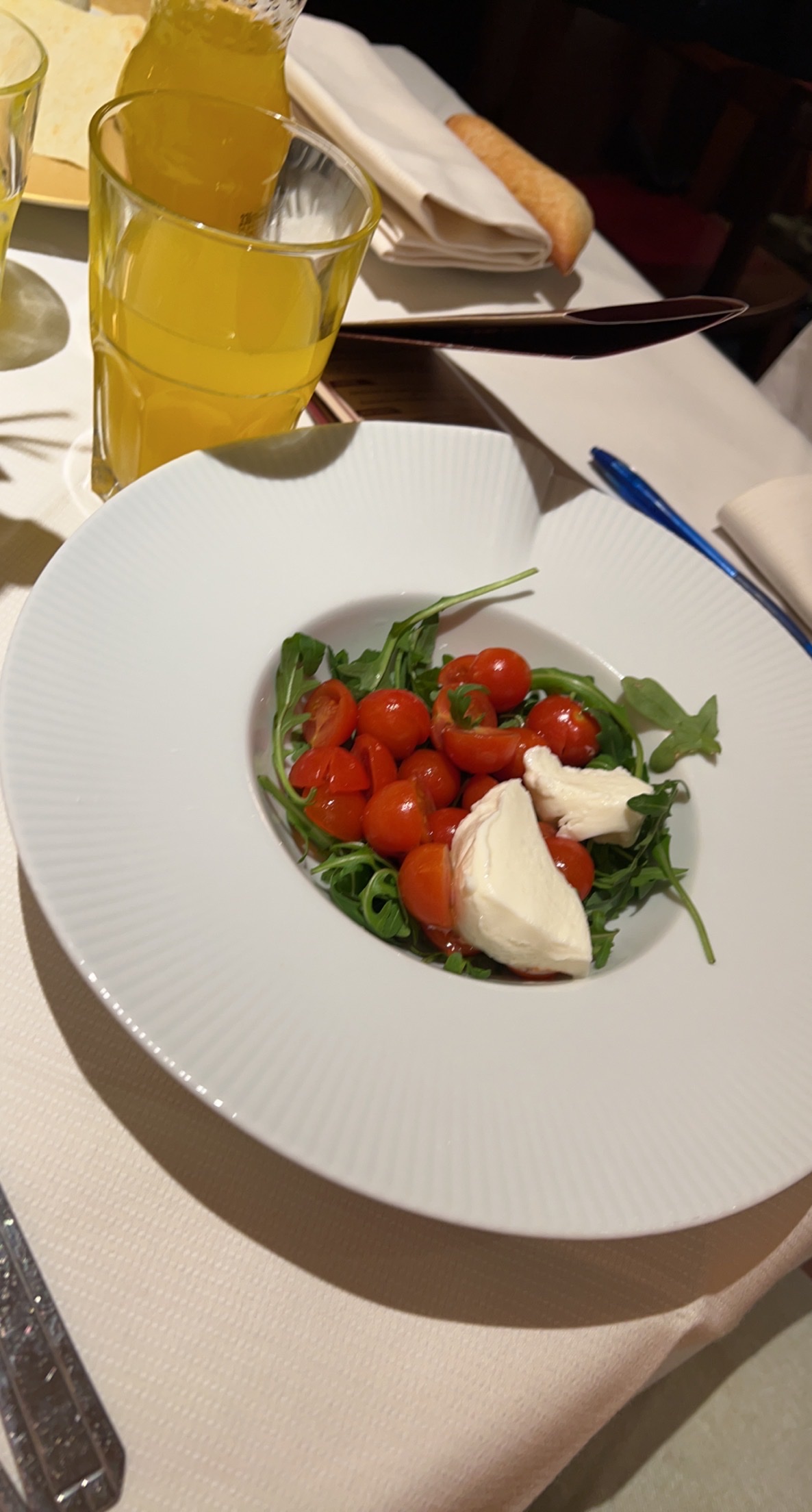 Accueilli comme il se doit avec le sourire et en plus un serveur au petit soin nommé Dimitri qui nous amène une petit sauce balsamique pour le plaisir de manger les tomates et sa burrata! Vraiment agréable d’être reçu de cette manière. Merci à vous et merci à Dimitri 🤗