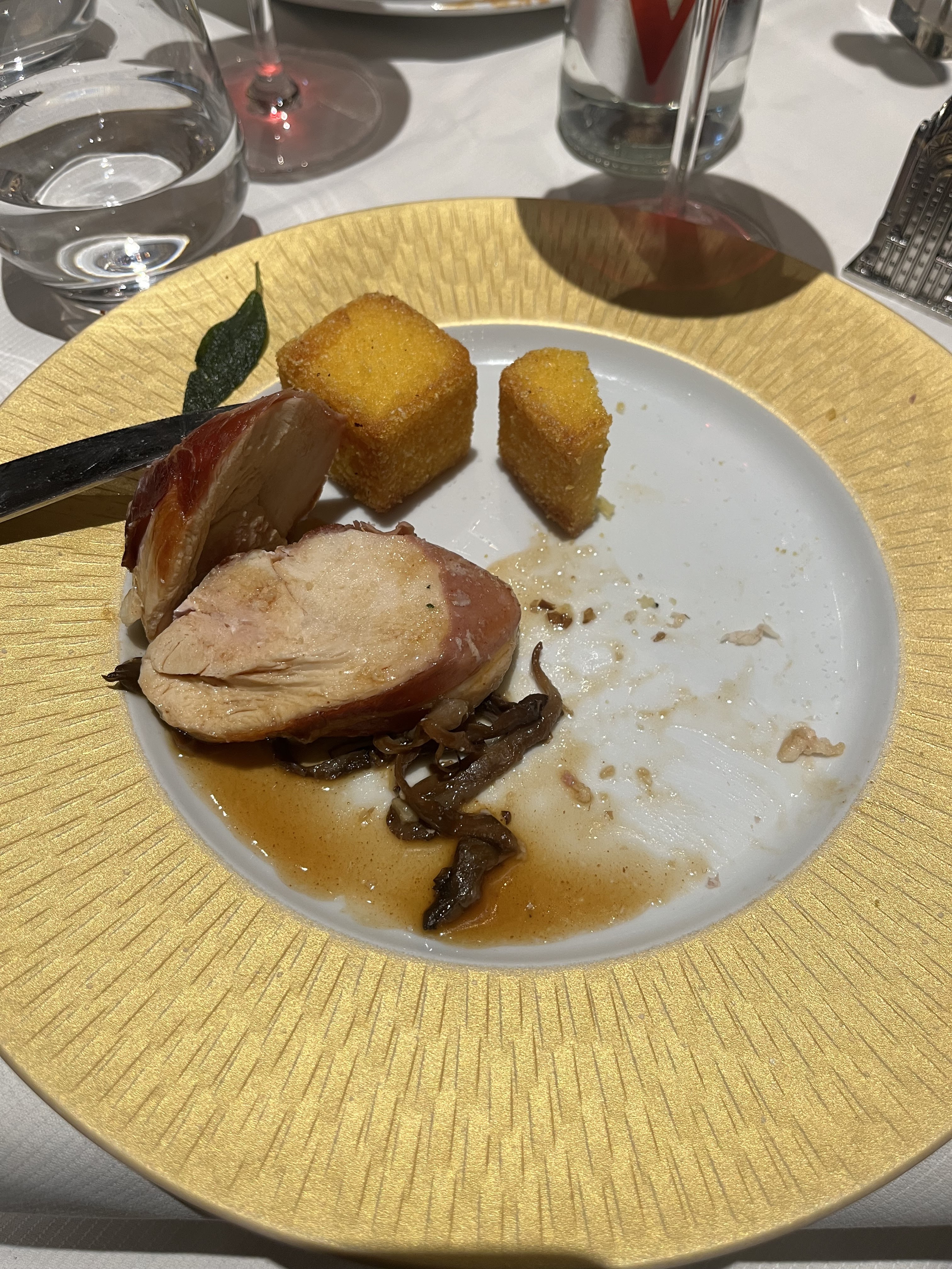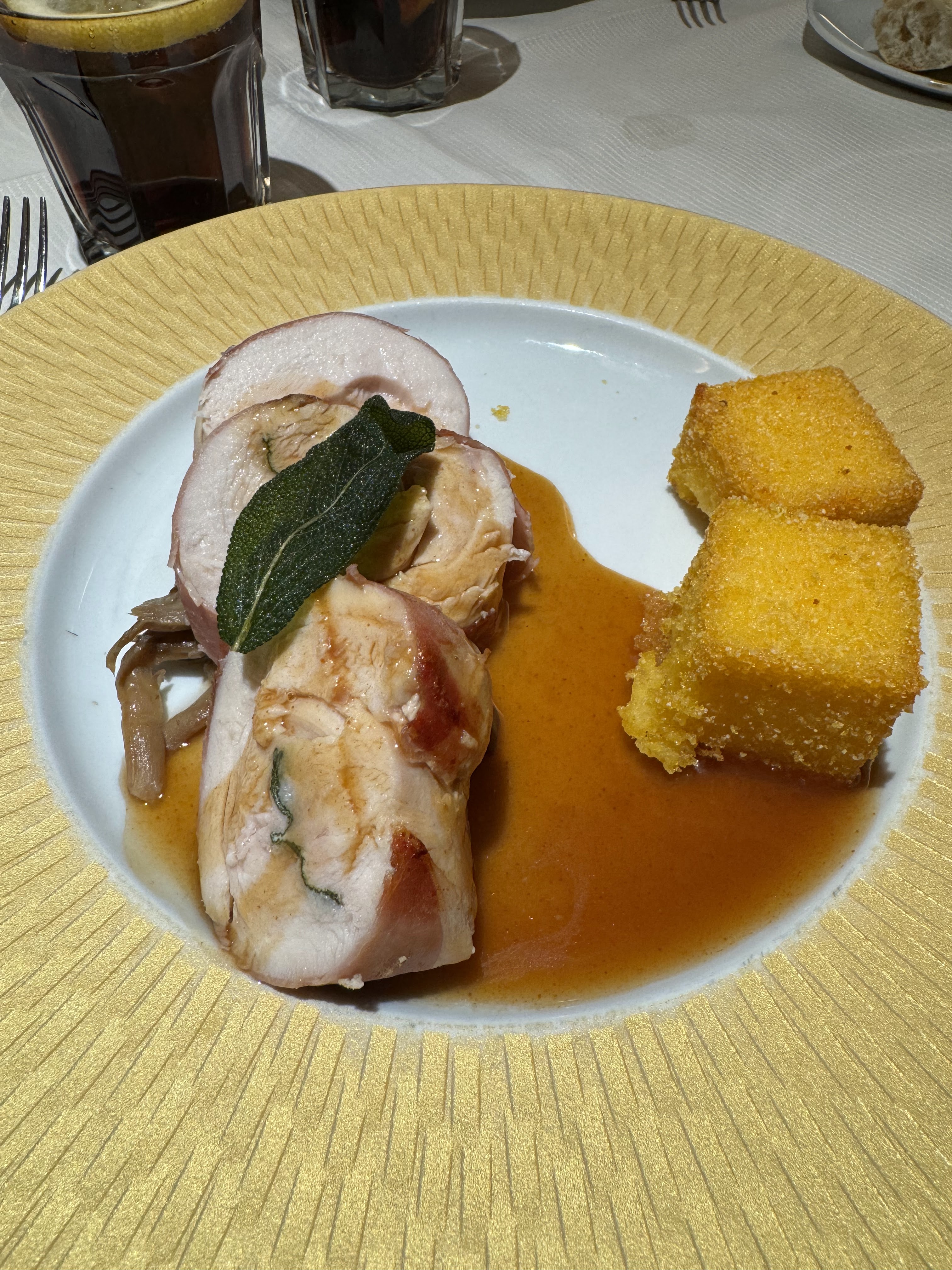 Un service et un décor impeccable. J'en attendais pas moins pour ce restaurant. L'entrée (Prosciutto di Parma) était bonne mais pas exceptionnel. Dommage car les produits sont frais et de qualité. Le mélange avec les fruits confits (dans un bol à part) est spécial. Le plat choisit (poulet au jambon de Parme) était très très bon. Le poulet, cuit à la perfection, fondait en bouche. Et les pommes de terre rôties à l'ail et au romarin un délice. Rien que d'y penser, j'en salive. Le tiramisu comme l'entrée n'était pas exceptionnel.