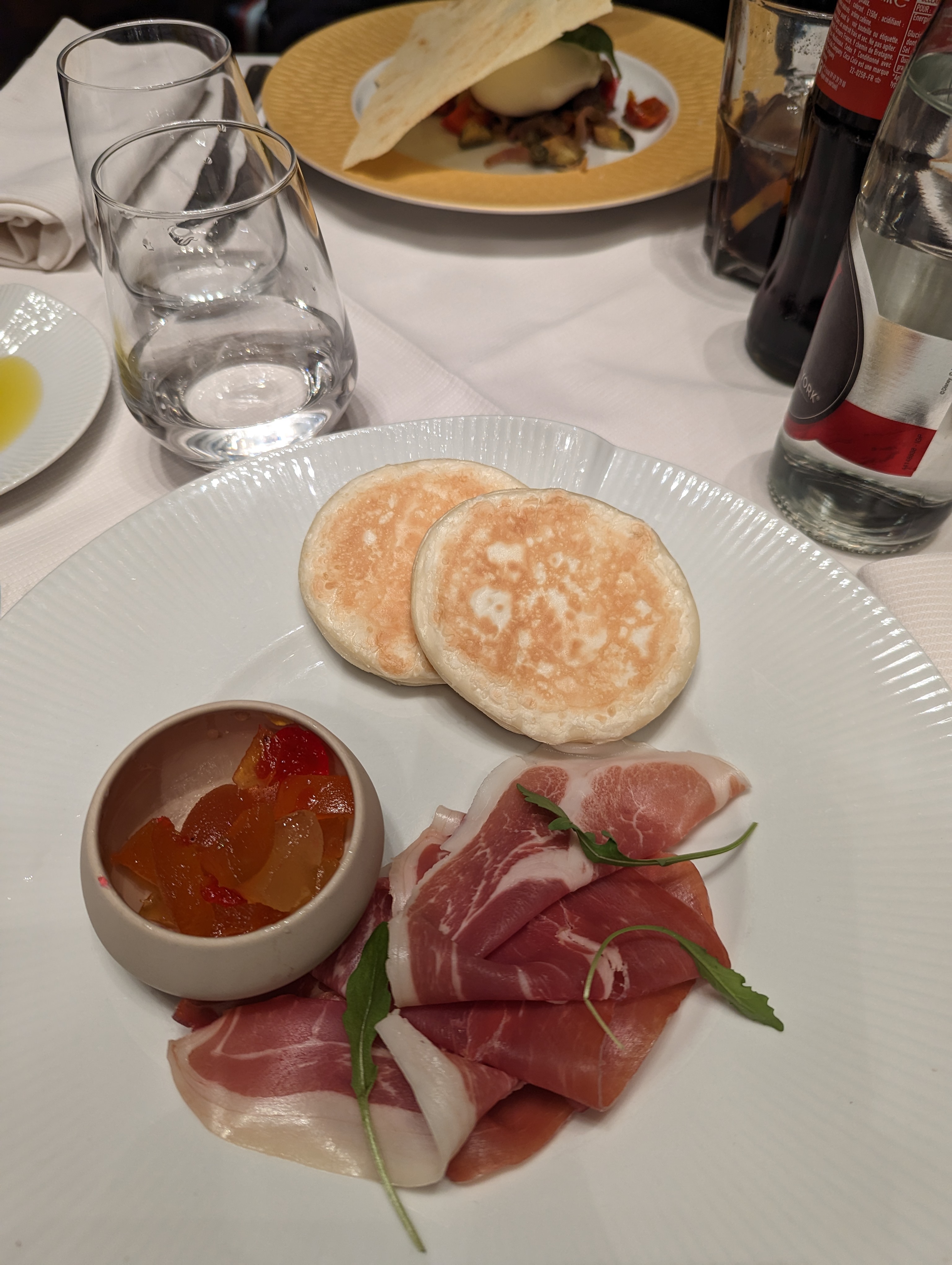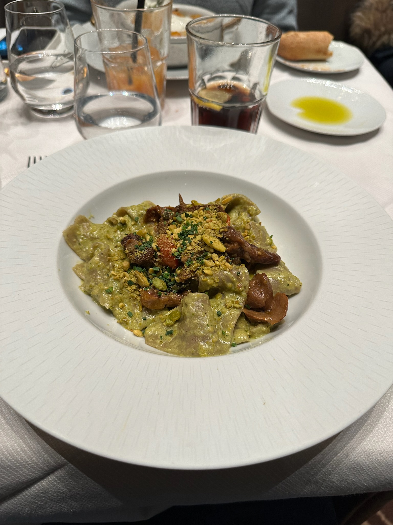 Le restaurant est magnifique, le service est bon même si elle essayait de nous pousser dehors alors que je terminais mon verre. Honnêtement, je n'ai pas regardé quels étaient les prix ici lorsque j'ai réservé, c'était italien et j'avais une réservation ouverte pour le dîner, alors je l'ai attrapé, j'ai pensé que c'était l'un des buffets. Je suis entré et j'ai dit à ma fille que c'était l'un des endroits vraiment chers et elle m'a dit que tu n'avais pas vu les signes de 3 dollars 🤦♀️ Mais sérieusement 30 € pour des gnocchis très trop cuits ? C'était terrible. Même le seul petit pain/morceau de pain était meh. On est en France comment tu as du mauvais pain ? Et depuis quand est-ce un pain aux chips de la taille d’une petite assiette, puisque c’est le pain que vous obtenez avec l’entrée burrata.