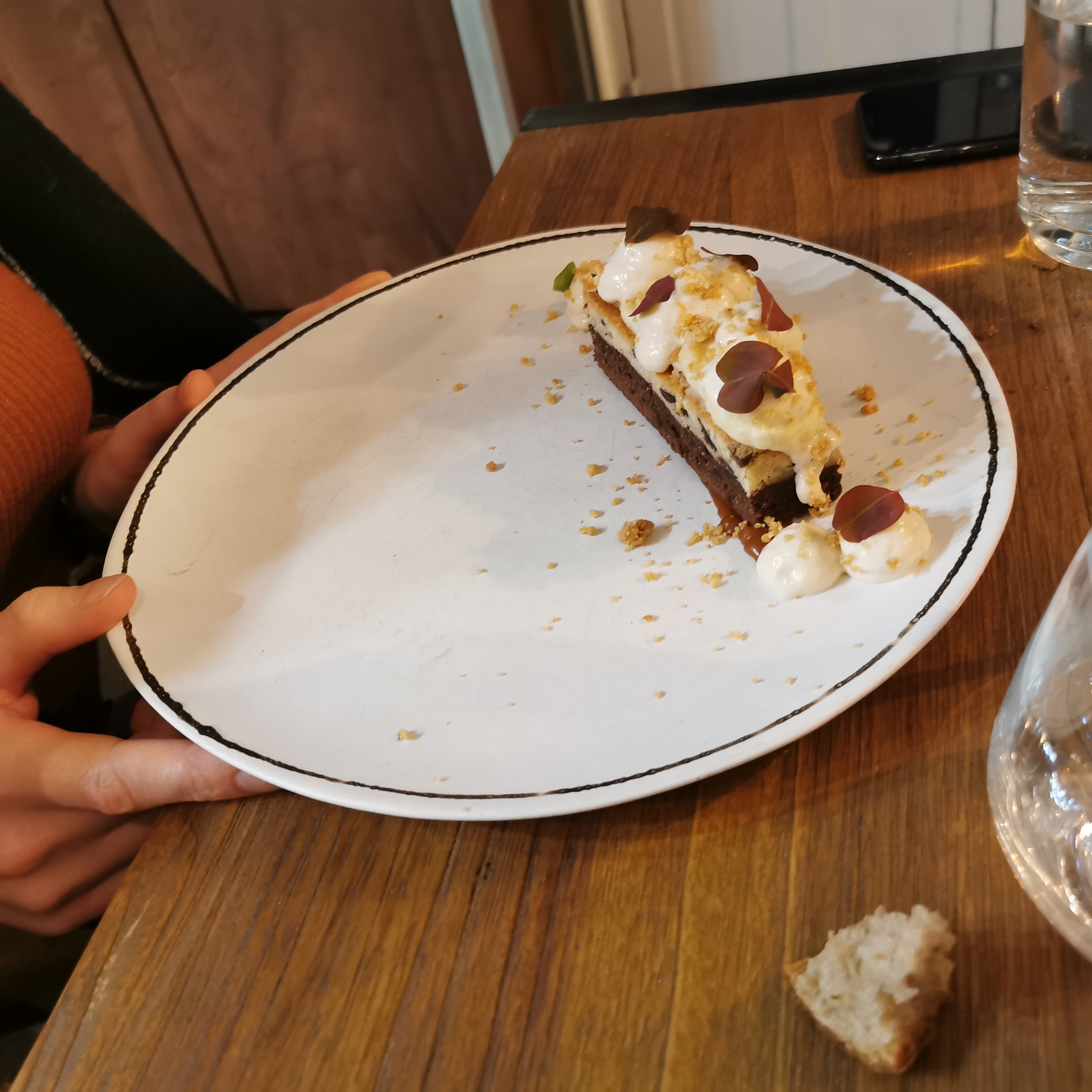 Nous avons testé le menu déjeuner à 25€. Le lieu est cosy, deco sympa et l’ambiance pas trop bruyante. Les options étaient alléchantes : 3 entrées, 3 plats et 3 desserts/fromage. J’ai opté pour un cochon aux carottes en cuisson lente en plat, c’était bon même si je m’attendais à une viande plus fondante. La portion manquait aussi de générosité (surtout pour ce genre de plat d’hiver réconfortant). Le dessert, une pavlova aux fruits exotiques était vraiment parfait, léger acidulé et pas trop sucré. Les plats sont bien présentés. Le service est un peu raide à mon goût mais je pense que je donnerai une autre chance à cette adresse car c’était un bon rapport qualité prix et j’ai envie de tester d’autres plats. Réservation conseillée même le midi.