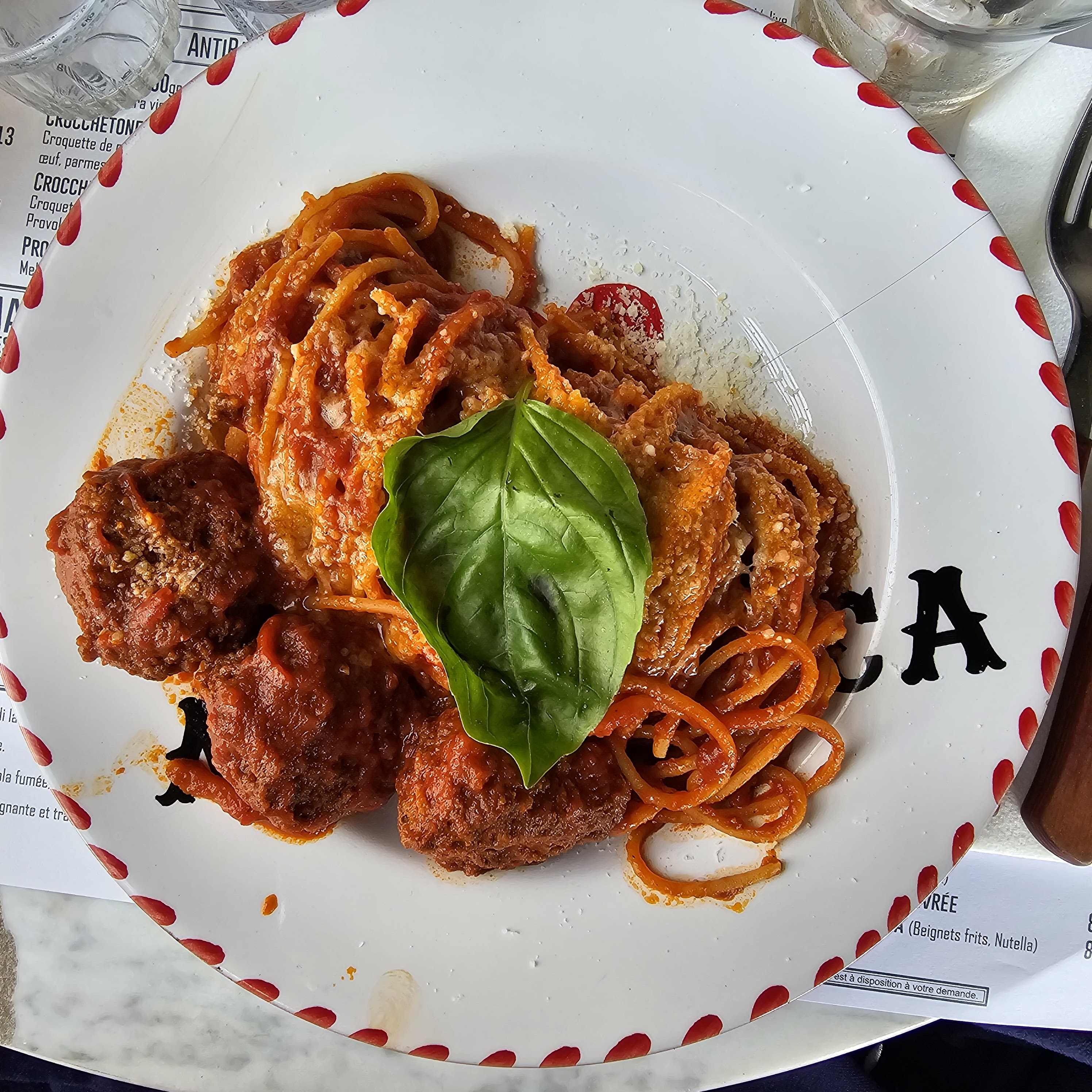 Un sans faute. Rapport qualité prix excellent. Des plats maison, le service impeccable aux petits soins, une terrasse au bord de l’eau, une ambiance conviviale. Tout était parfait. Je vous conseille les spaghettis con polpette, une tuerie !