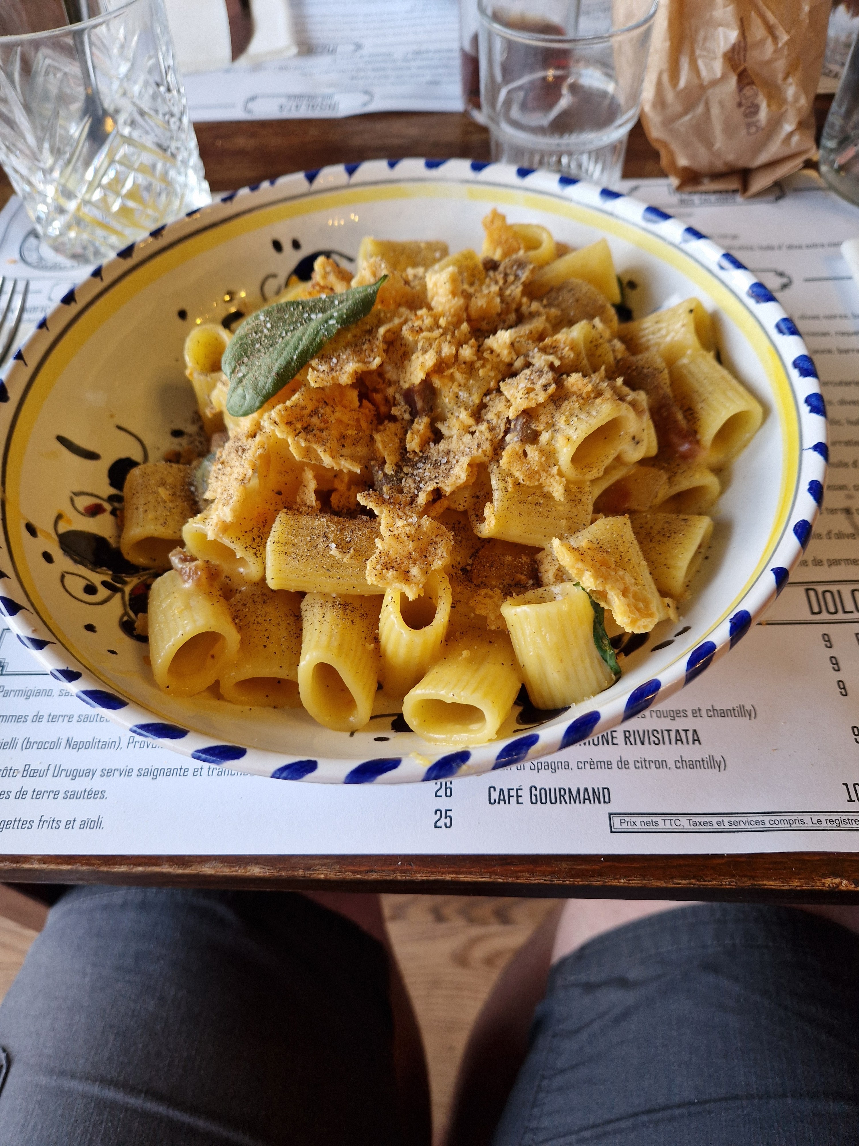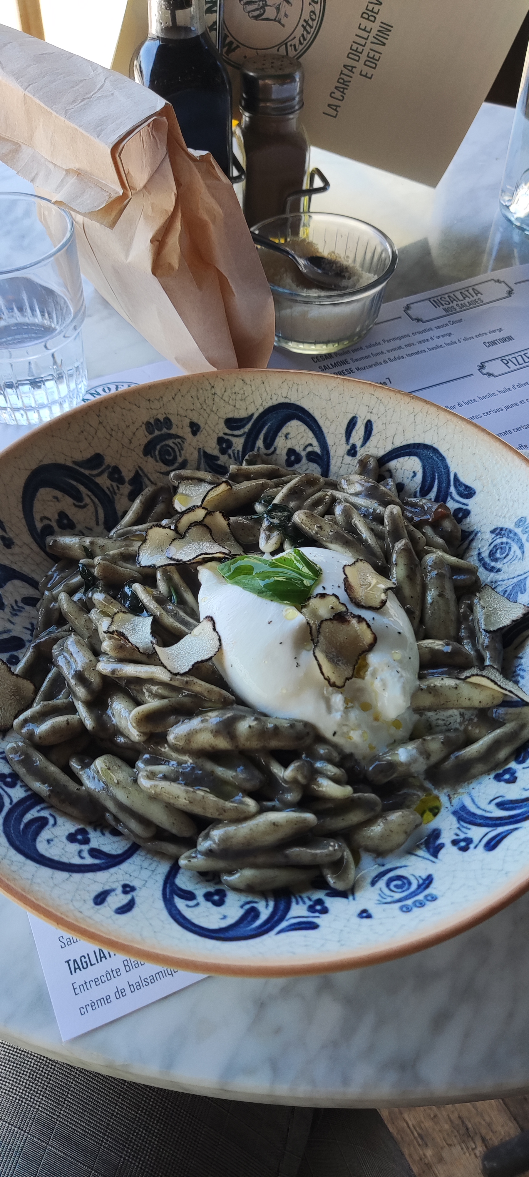 Des pâtes fraîches et généreuses avec une sauce à la truffe à tomber ! Un cadre original, nous étions placé près de l'olivier qui ajoute une touche de Provence en Italie. Je recommande sans réserve. Pensez à réserver.