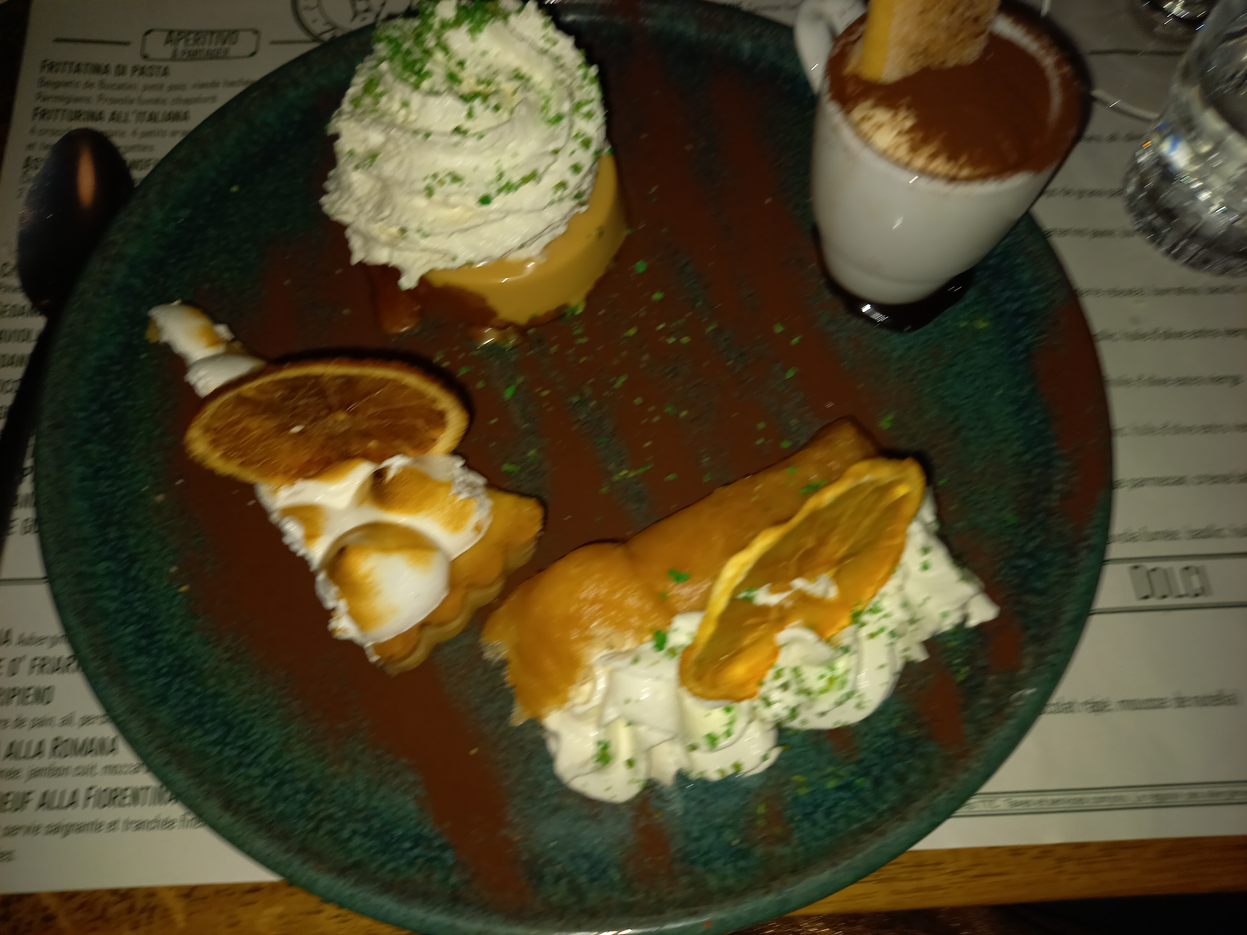 Nous avons passé un bon moment , le service impeccable. Pour les plat la pizza était vraiment excellente , la salade ma femme était correct. Les dessert était correct aussi , le tiramisu était bon dommage qu'il y avait pour moi un petit peu trop de café et le café gourmand sans plus. C'est un bon restaurant que je recommanderai particulièrement pour les pizzas. À bientôt