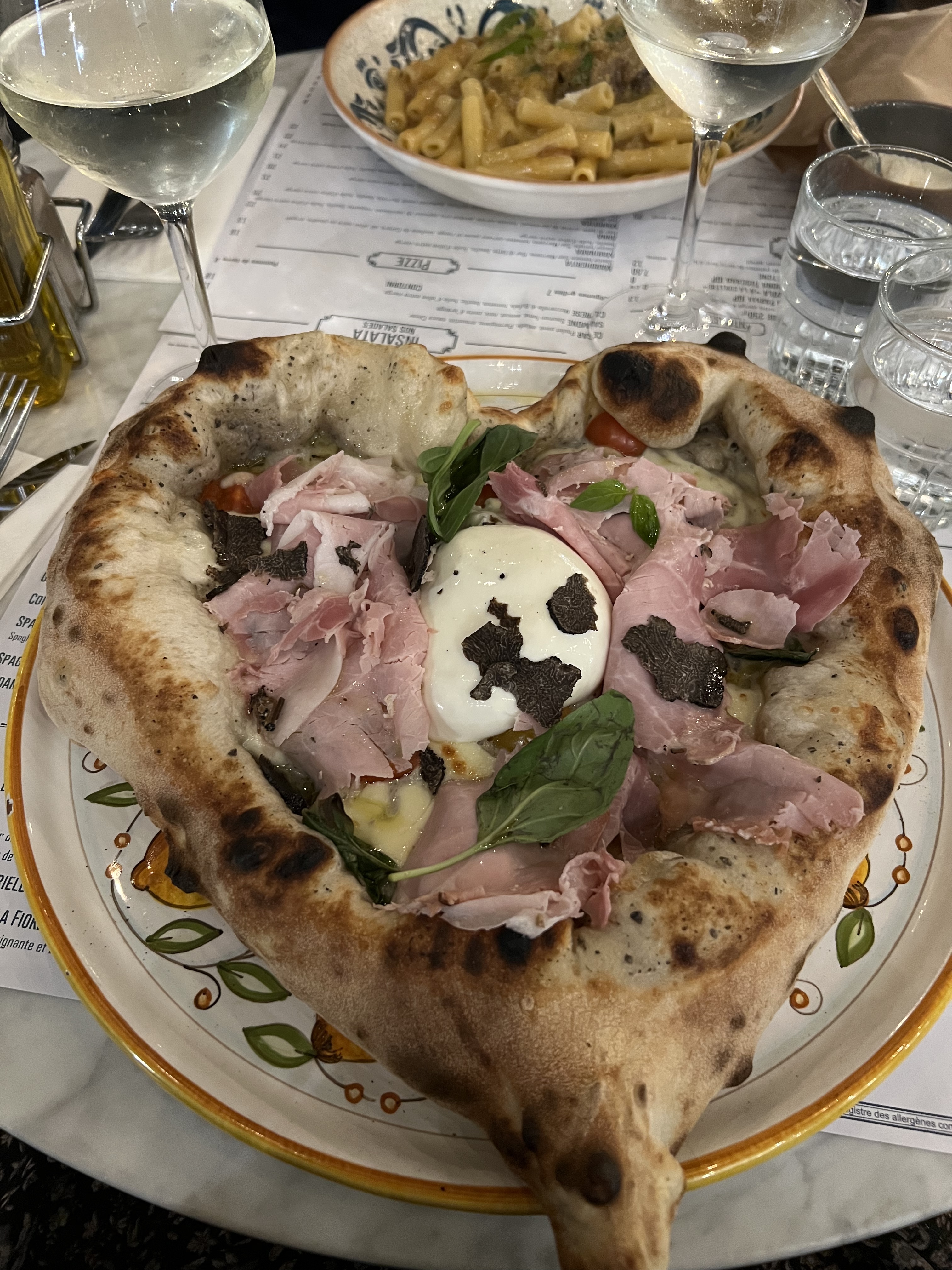 Les pizzas étaient divines particulièrement celles aux truffes. Tout le monde a été ravi avec des choix de plats différents (Gnocchis etc..) La promiscuité des lieux fait qu'il est difficile de discuter avec son voisin mais on y pense pas quand on savoure des plats aussi gustatifs.