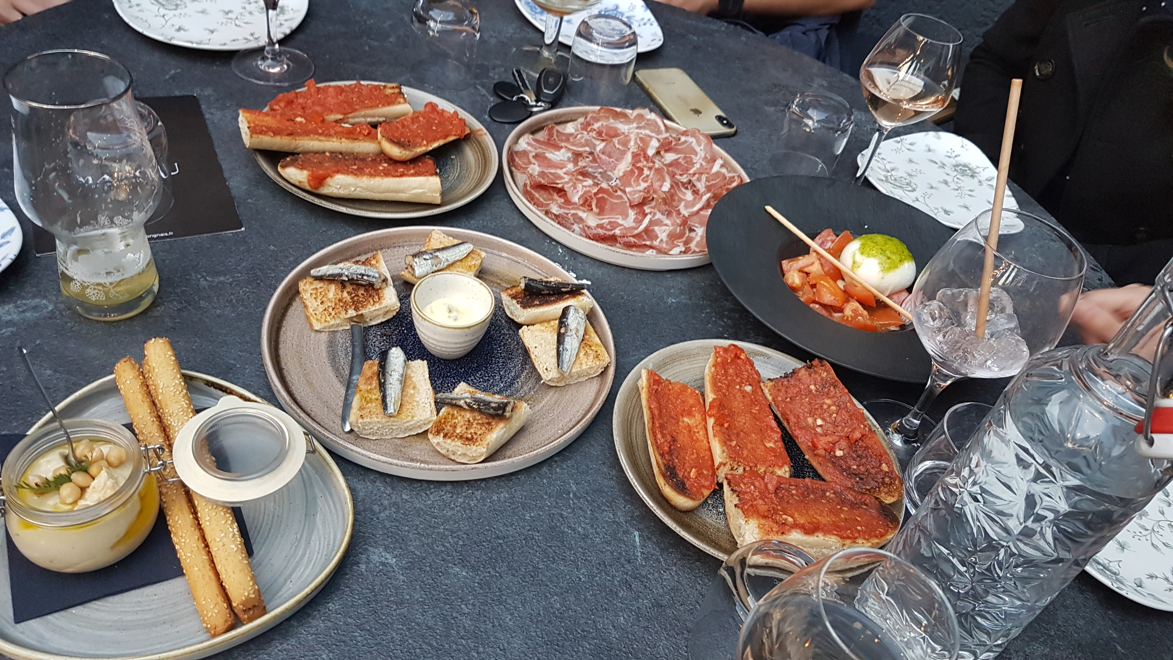 Bon moment avec des tapas partagés et un bon vin