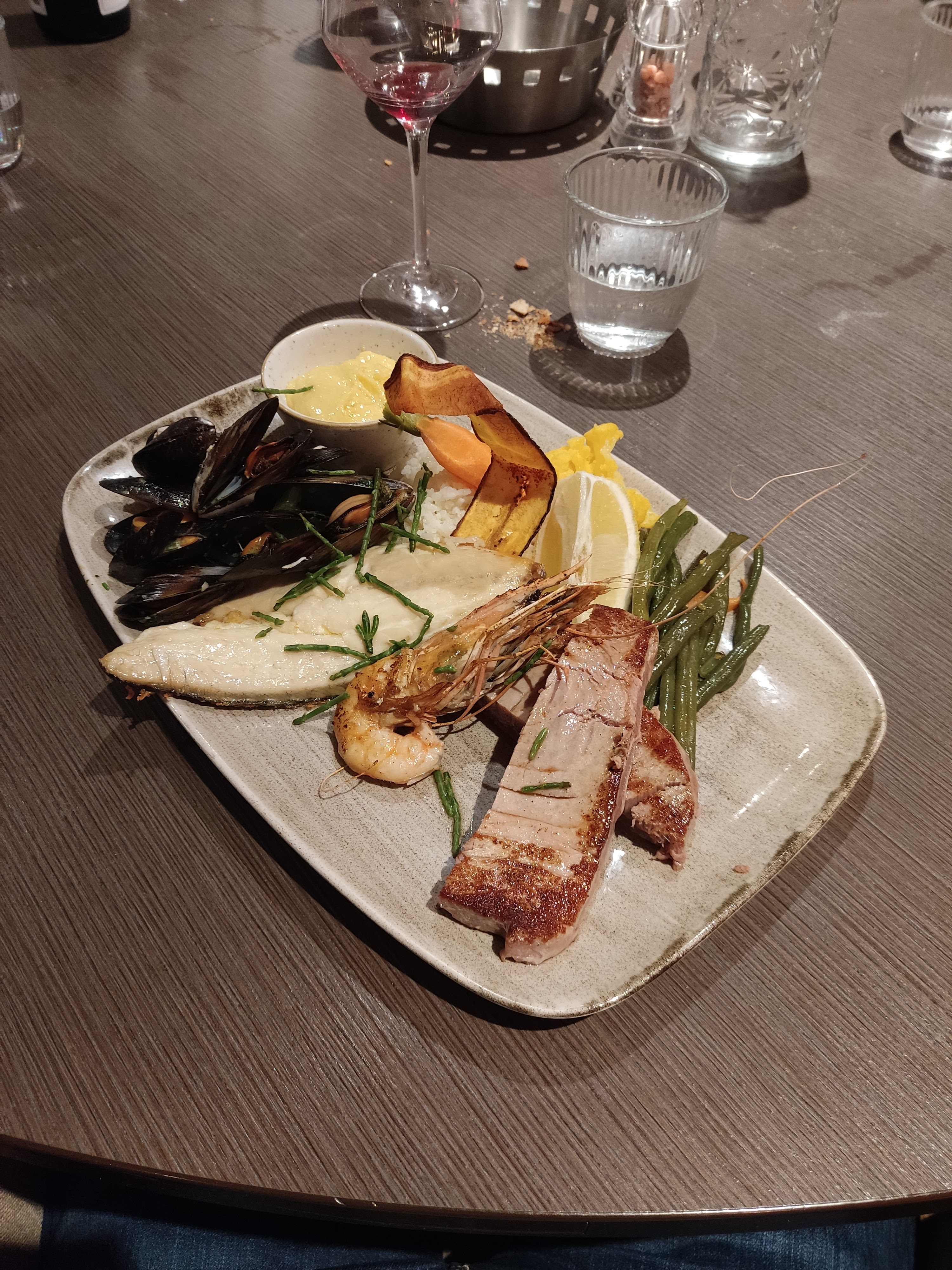 Découverte de ce super restaurant. Belle déco. Bonne ambiance mais un peu bruyant . Carte top, produit frais et cuisine maison. Absence de menu enfant en carte alors qu il existe bien. Les aperos sont servis dans des petits verres donc quantité réduite dommage...