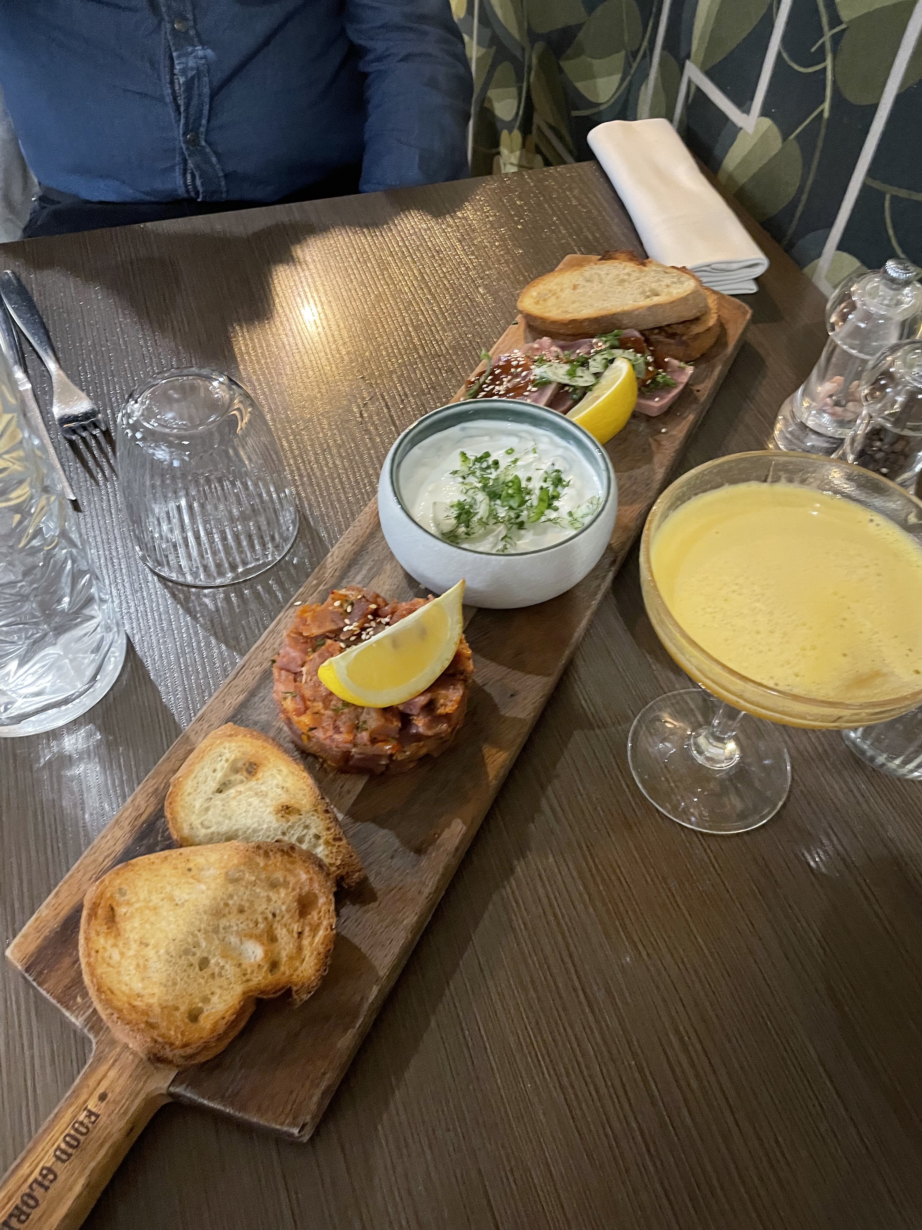 Lieu très sympa ! Cocktails délicieux, planche de la mer excellente… néanmoins… risotto TRÈS salé (mais bon malgré le sel en excès) Merci malgré tout pour ce bon repas dans l’ensemble !
