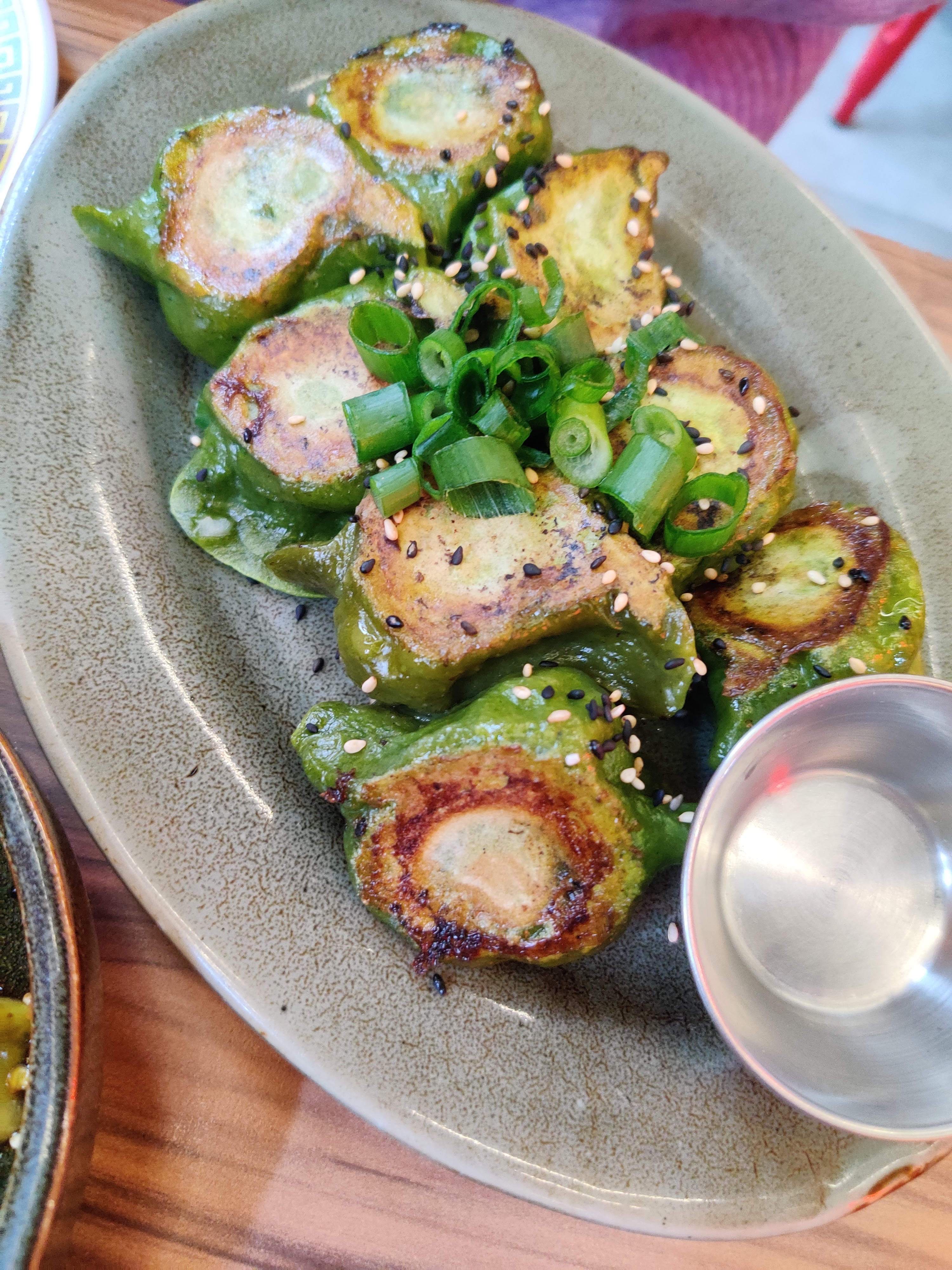 Pour un restaurant spécialisé sur les dumplings, et moi qui en raffole, c’est la déception 🥲 Nous avons pris un mix de chaque dumpling, et la plupart étaient fades + certains étaient cramés. Les sauces n’ont pas réussi a les agrémenter. En entrée, nous avons pris des concombres frappés, qui étaient corrects mais sans plus. Ne prenez pas de mochis en dessert, on dirait ceux achetés dans le commerce. Service correct, et salle super bien decorée !