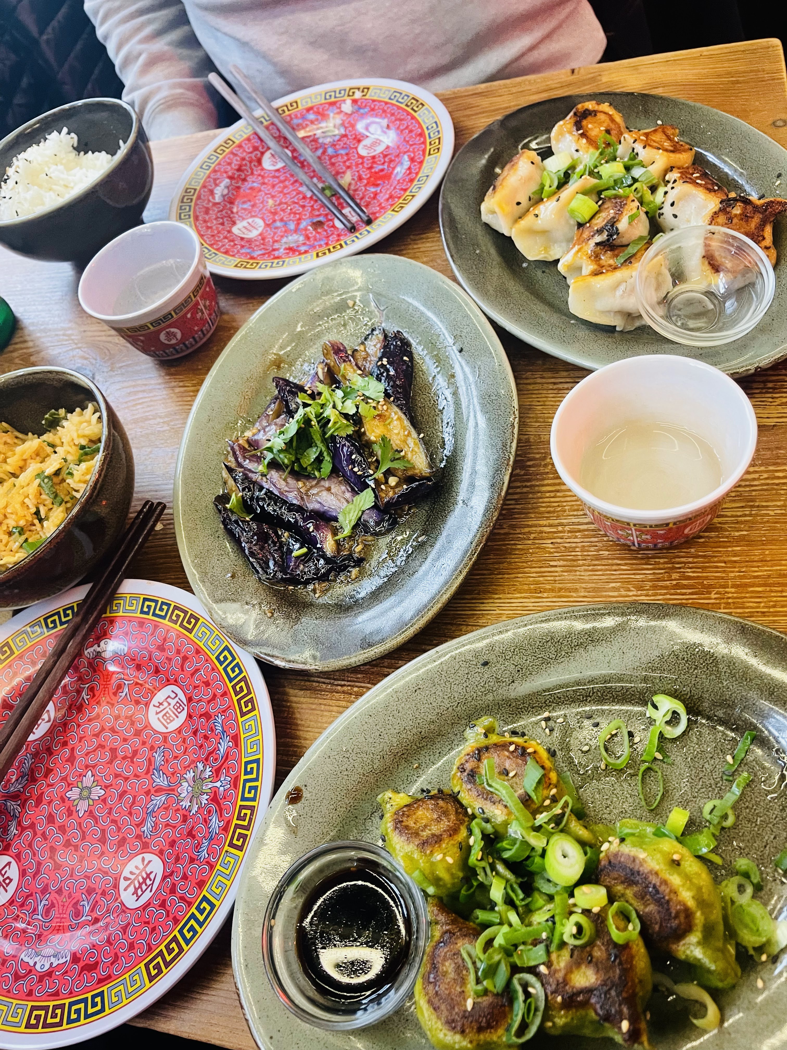 Nous avons commandé en livraison. Les hongshao aubergines sont une tuerie (personnes au régime s'abstenir !). Nous avons également beaucoup aimé les cheesy jiaozi et les chicken jiaozi, ainsi que les ciboulette pancakes. Ce n'est pas cher et les quantités sont généreuses.
