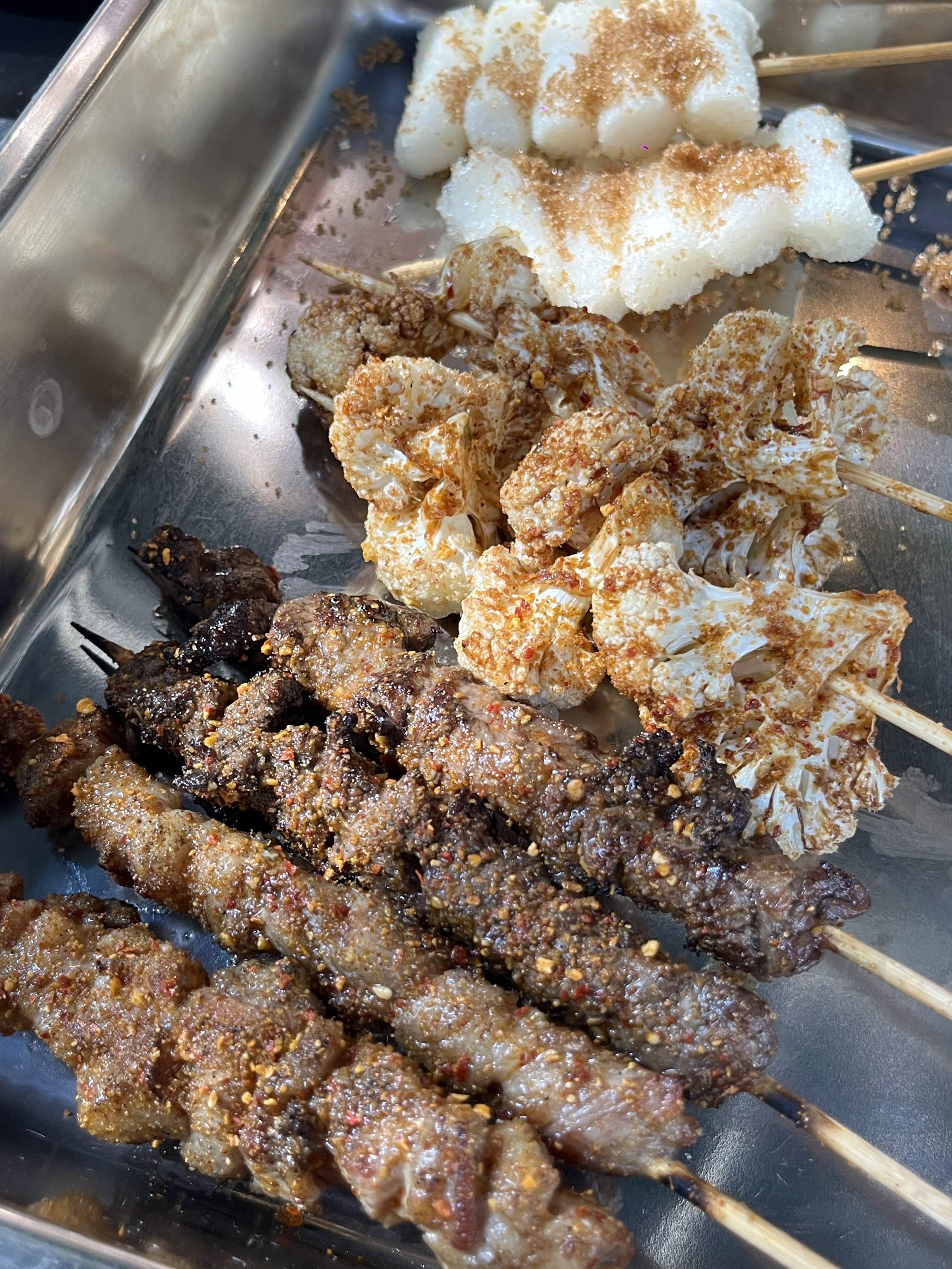 Expérience très plaisante : Ce nouveaux restaurant propose des brochettes très bonnes, même si les meilleurs reste à mon avis l’agneau, et les versions ailes ou cuisses de poulet, et ceux au gâteau de riz (image ci-dessous). La saucisse thaïlandaise était pas mal non plus Je trouve que la brochette de bœuf est moyenne par rapport aux autres, pour ceux qui est des nouilles c’est passable. L’ambiance est moderne, le service très correct. Je recommande.