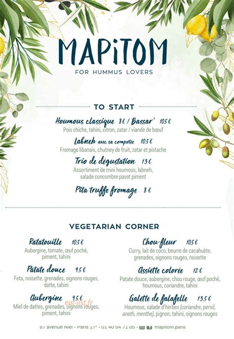 Voici toutes les informations sur le Restaurant Mapitom qui ce trouve au 87 Av. Niel, 75017 Paris (75). Sur cette fiche vous trouverez les photos, l'adresse, les horaires d'ouverture, le numero de téléphone et les avis clients.Vous pouvez églement rédiger un avis si vous le souhaitez en bas de page.