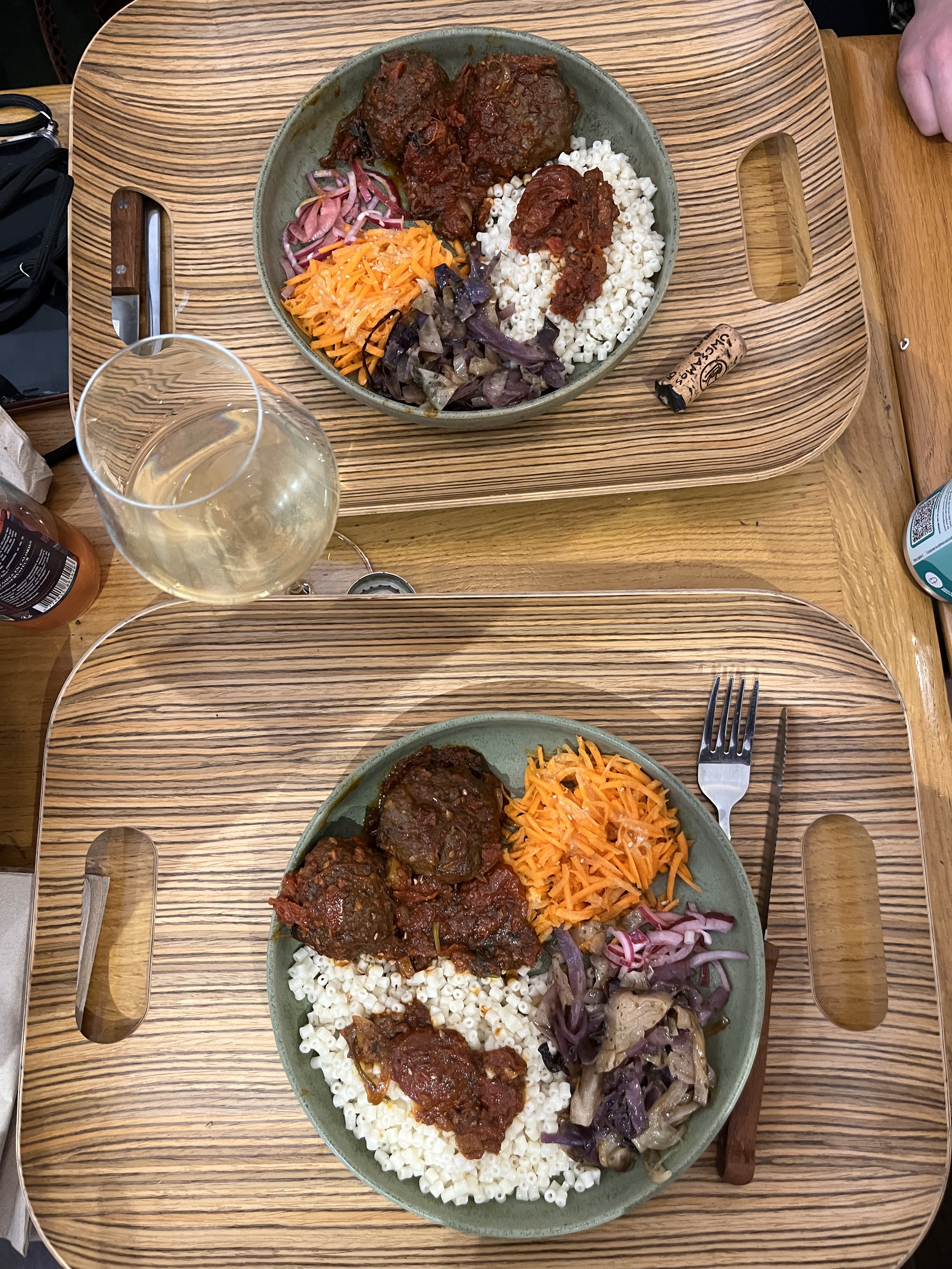 Une excellente adresse. En entrée une pâte d'olives à 5 balles. Excellente. On a mangé à 2 dessus. Le plat , boulette de porc accompagné de choux, betterave,semoule. Excellent aussi. Moins de 20 euros au final pour un délicieux repas , service impec , lieux sympa. Bref du tout bon