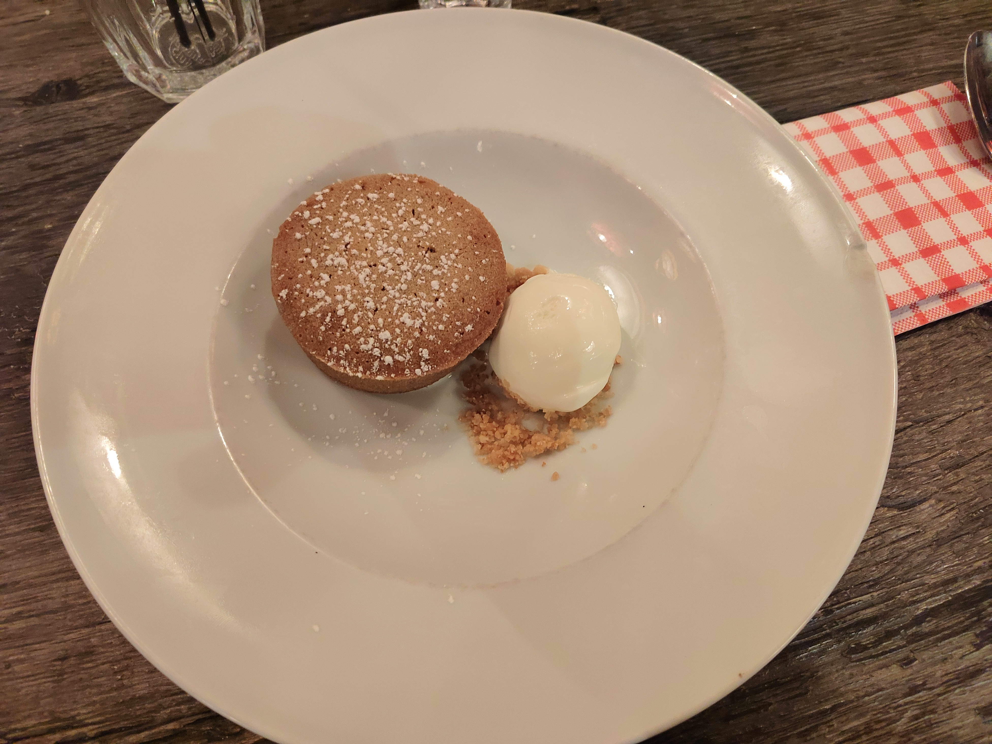 Service impeccable, le camembert chaud avec les patates sautées étaient bon mais trop de patates et pas assez de jambon. Plats généreux et prix correct.
