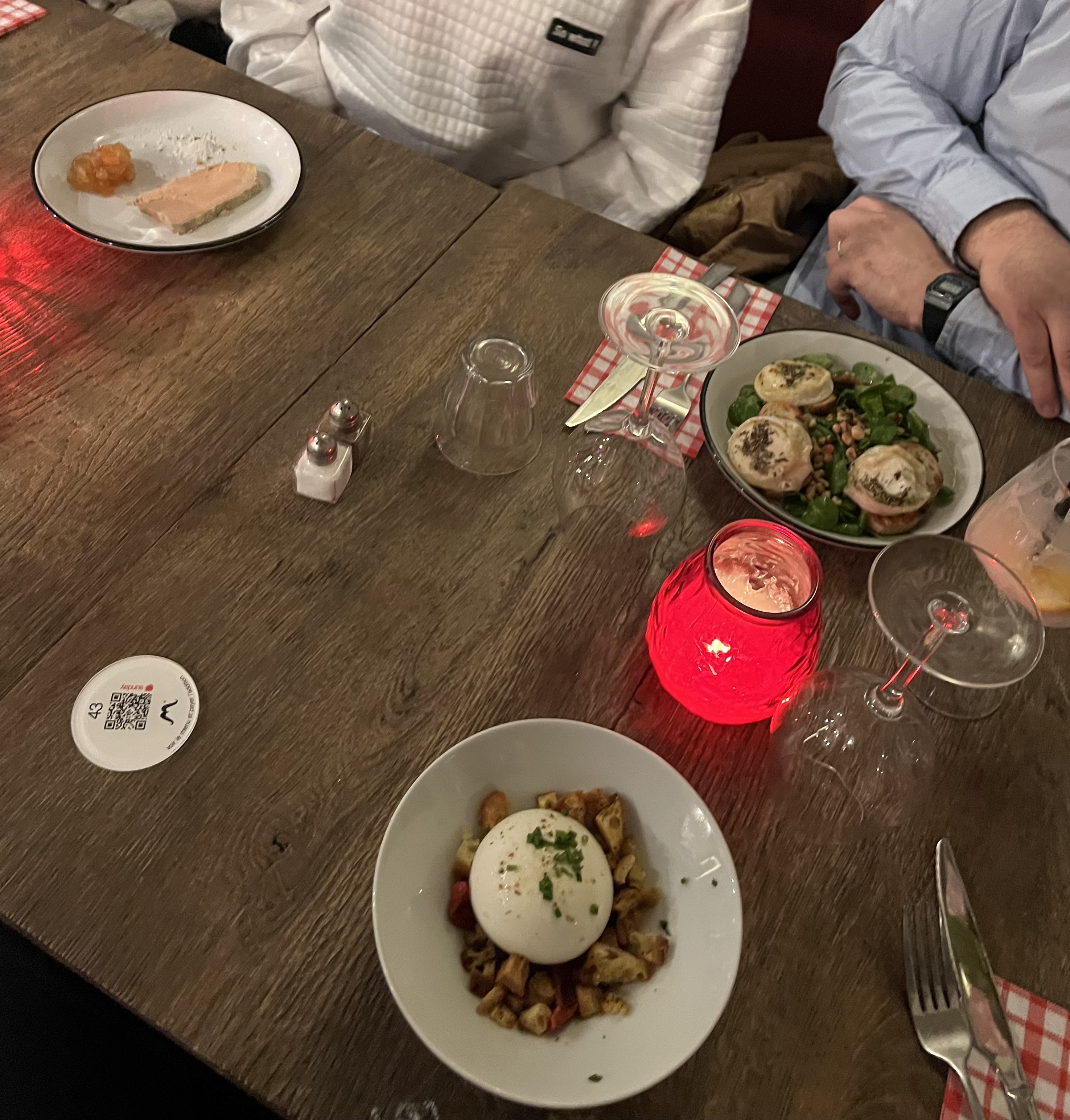 À ma connaissance, seul lieu dans lequel on peut trouver des bâtons de mozza et des huîtres en apéro et ouvert sans interruption. Seul bémol, la commande du verre arrive beaucoup plus vite que les plats, ce qui induit une seconde commande pour remettre les niveaux. Et ça c’est pas très cool. Détail observé 3 fois sur 3 visites ! J’ai trouvé aussi fort dommage de mettre une appli pour payer l’addition. Je n’ai pas trouvé son utilisation très fluide et ce que je trouve dommageable a moyen terme, c’est que cela déshumanise encore plus l’expérience.
