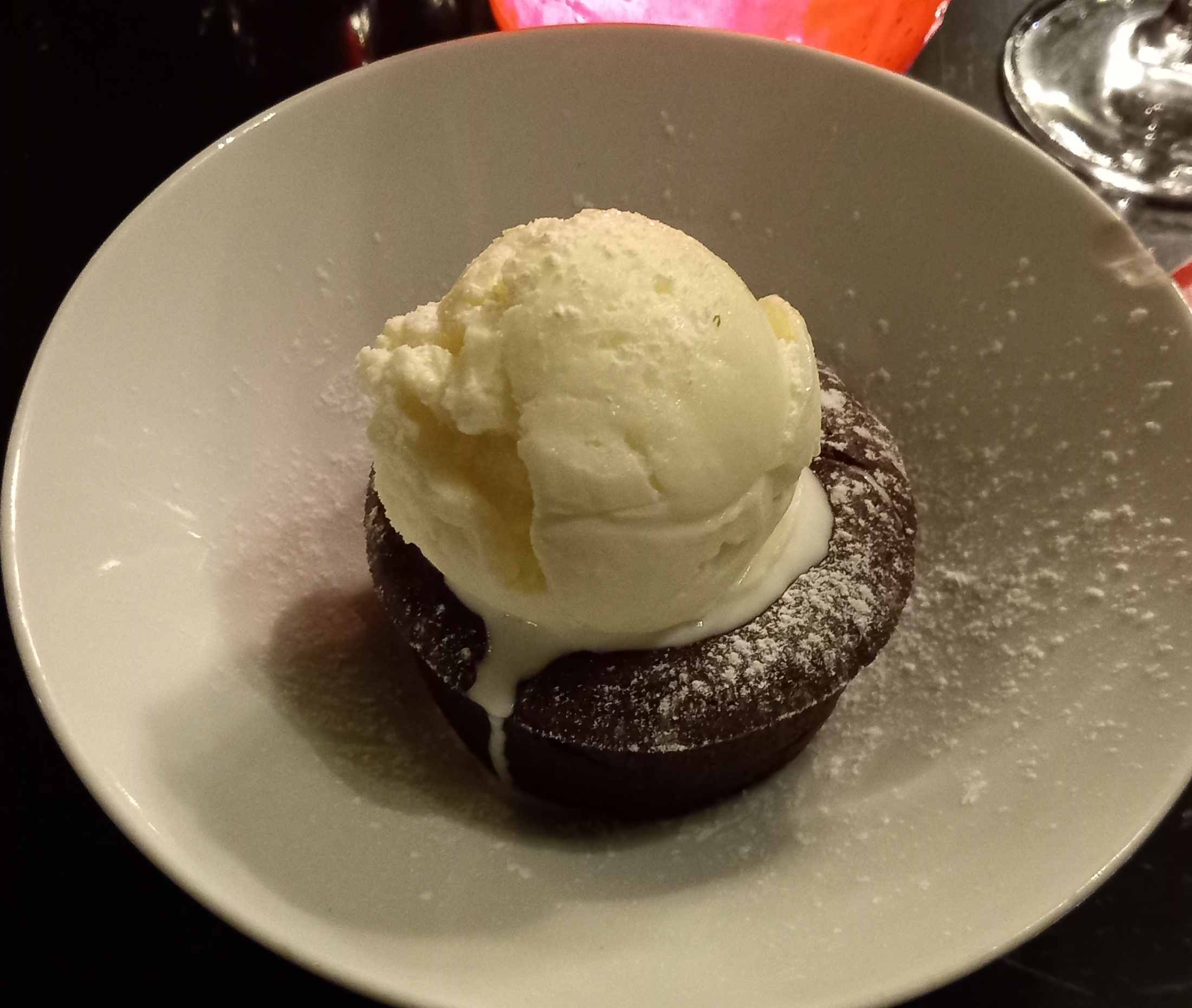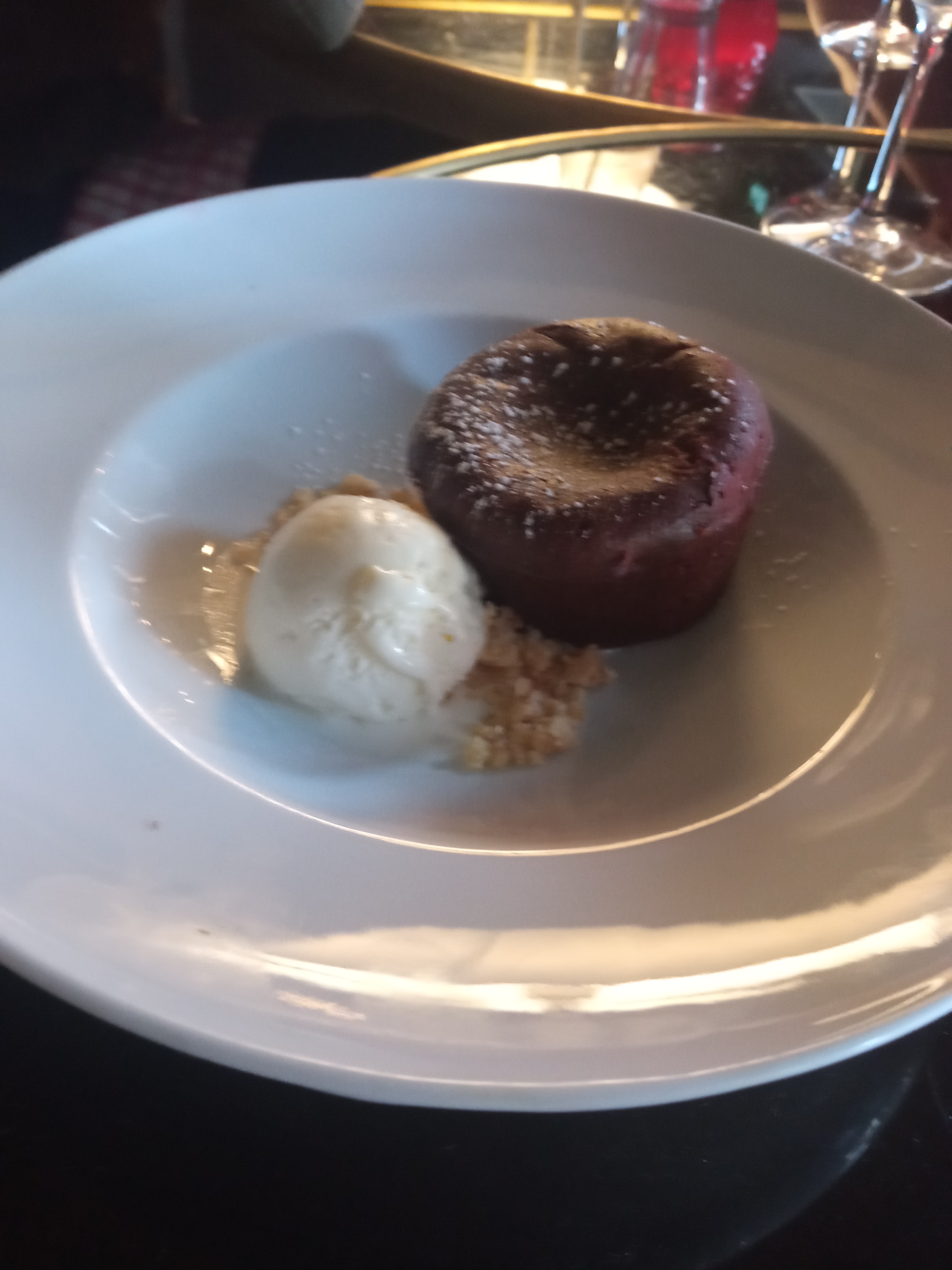 Nous étions en terrasse. Tartare de saumon/frites très bon. Fondant au chocolat délicieux. Serveuses rapides, efficaces et très sympathiques. Je recommande.