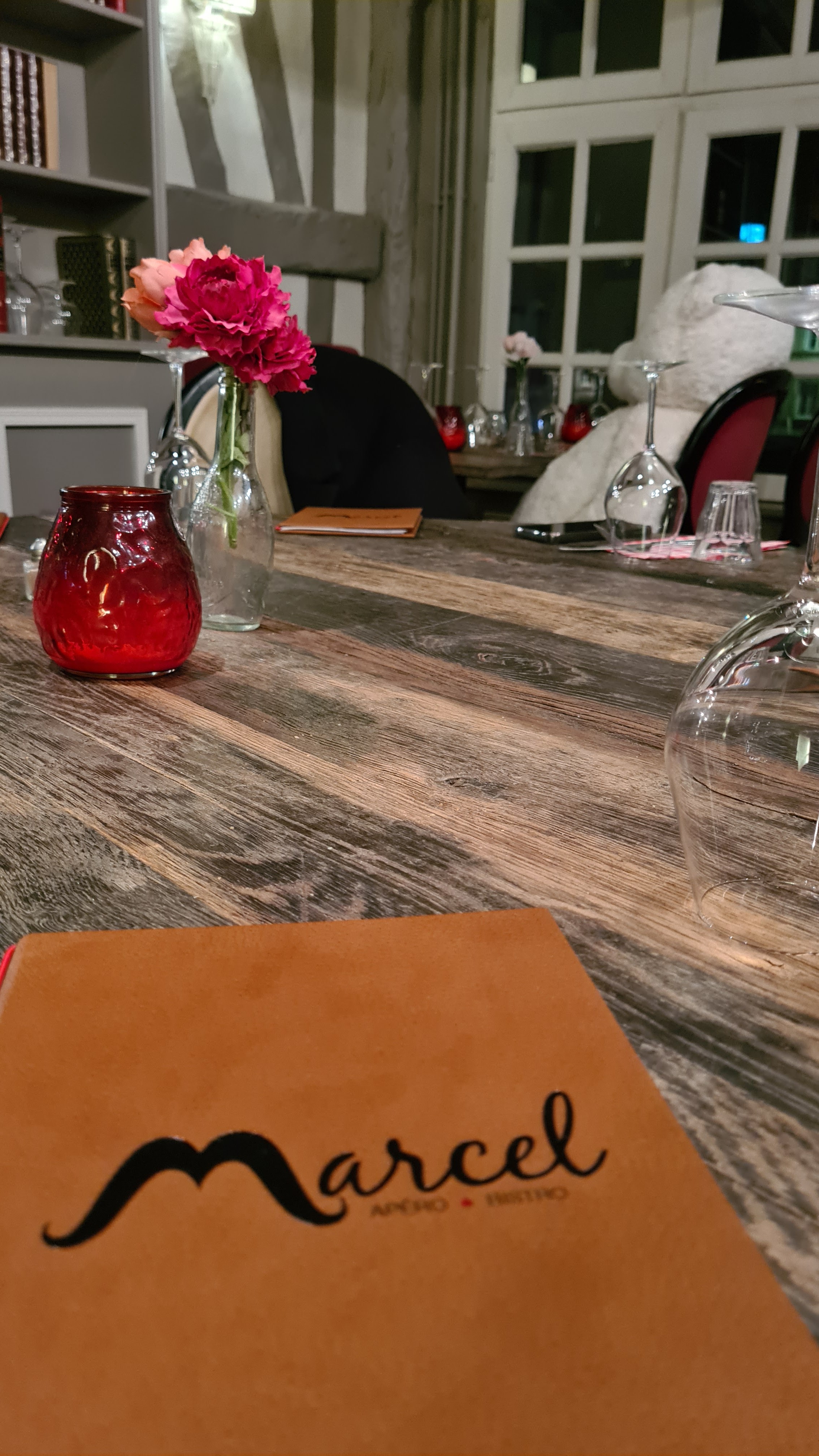 Après l'enchantement la déception... Première expérience Chez Marcel en décembre 2022. Au cours d'une promenade en Centre ville nous nous arrêtons un midi avec ma petite maman dans ce restaurant trop mignon. Aucune de nous deux ne connaît mais la carte est attrayante, pas trop grande (donc on se dit de qualité) et les prix franchement raisonnable. Un accueil au top, un service génial et des plats au délicieux! Pr ma part fois gras et pâtes à la truffe ! Un régal ! Associé a deux verres de vin et environ 35 euros par personne, vraiment raisonnable pour le très bon repas dégusté. Depuis des mois je ne cesse donc de vendre à tous mes contacts cette adresse, en leur précisant qu'ils ne pourraient pas être déçus... Ce soir arrive enfin le moment où l'occasion me permet de retourner chez Marcel, une sortie entre copines et une adresse que je veux absolument faire découvrir, tant l'expérience antérieure fût bonne. Mais hélas une déception du début à la fin... Apéritif : prosecco tiède. Lorsque nous interpellons le serveur toutes nos excuses il n'y avait plus de bouteilles au frais... A aucun moment on ne nous propose un autre verre ou une autre boisson... Bref c'est le début du repas nous n'insisterons pas trop. Arrive ensuite les assiettes de foie gras (très bon) mais sans petit toast, un simple morceau de baguette traditionnelle... Bon certains diront elle chipote... Peut être... Arrive le plat et mon impatiente envi de retrouver cette sensation extraordinaire avec les pâtes à la truffe vécue la dernière fois... Et là c'est le drame... Assiette froide renvoyé en cuisine, et au finale des pâtes à a la truffe (surtaxé de 3 euros au menu initial), sans aucun goût ! Mais vraiment ! J'ai du vider une bonne partie de la salière... 😓 Tout de même un point positif le vin était excellent mais à 36 euros la bouteille heureusement... Clap de fin : 40 euros par tête, aucune remise commerciale car le responsable est absent et la conclusion que nous ne reviendrons pas... Je tiens à indiquer tout de même que le service a été irréprochable du début à la fin.