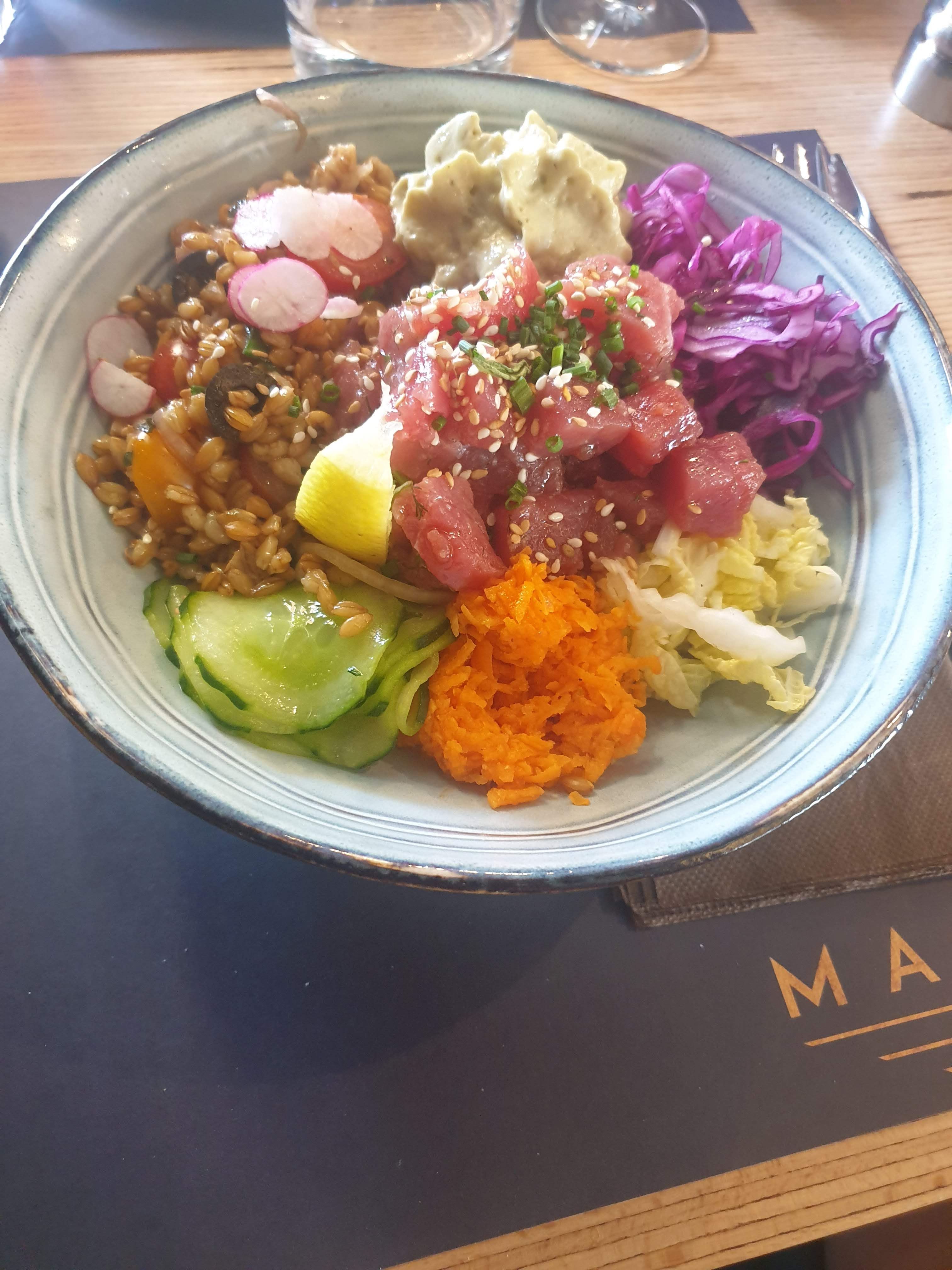 Restaurant méritant le détour! La déco est au top et surtout l accueil et les plats sont super! Les assaisonnements et accompagnements sont vraiment bons ( nous avons pris le tataki de thon qui est une merveille) ne pas faire l impasse sur les desserts car ils sont largement au rendez vous! Nous sommes venus par hasard mais reviendrons en connaissance de cause 👍🤩🤗 Bravo à l équipe!