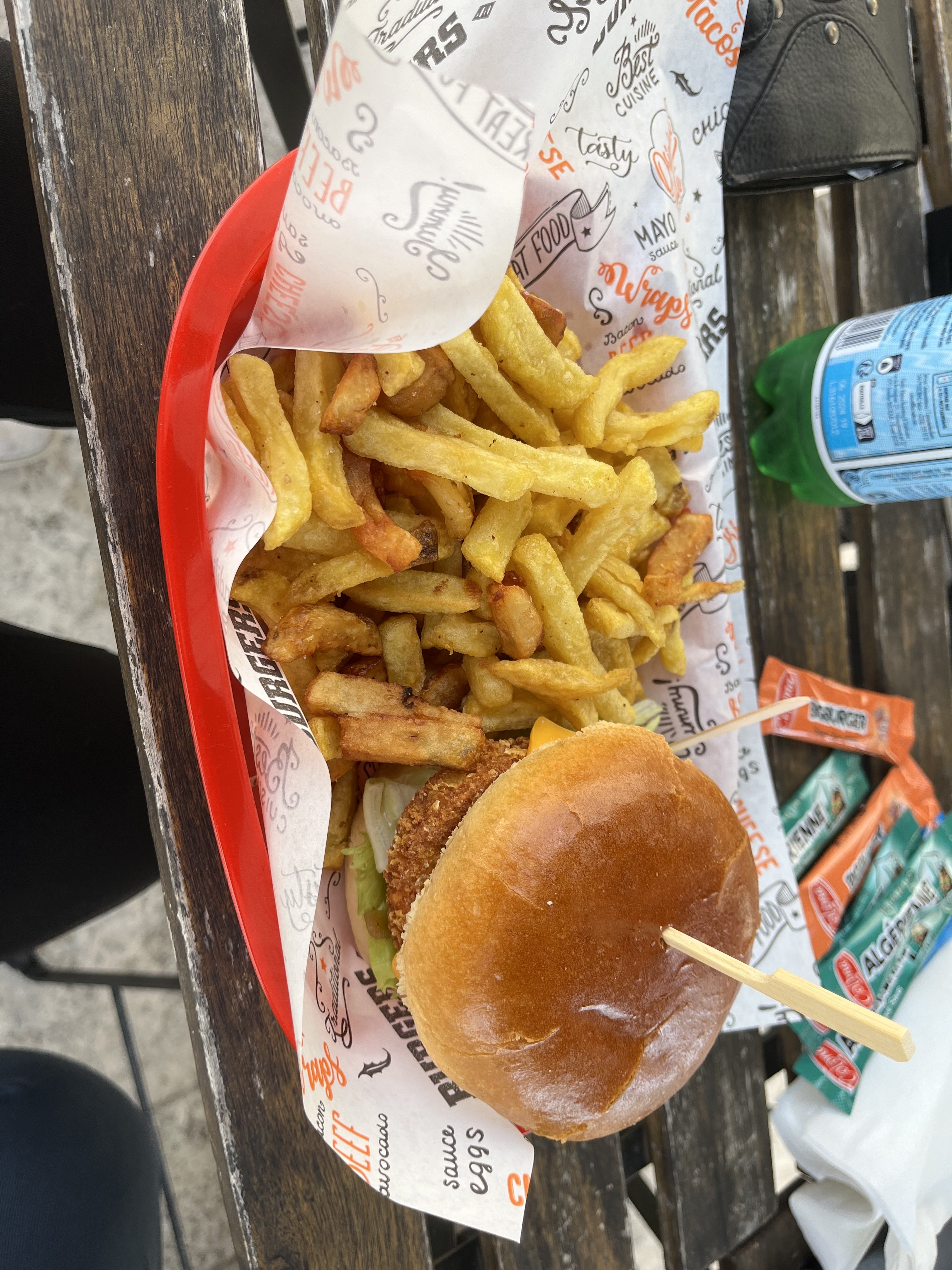 De bon hamburger nous avons pris un chicken et un rustiques Cependant lorsqu’on lis l’intitulé des ingrédients de l’hamburger on s’attend à retrouvé les ingrédients dit tel que pour le chicken ou il est dit que ça serai un filet de poulet mais on retrouve un steak haché de poulet ,et également pour le cheddar fondant dans le Burger c’est une toastinette Toutefois ça reste bon. Avec des frites qui sont un peu trop grasse on ressens qu’elles ont était deux fois Dommage avec ce prix là on s’attend à manger ce qu’on lis et ce que l’on commande
