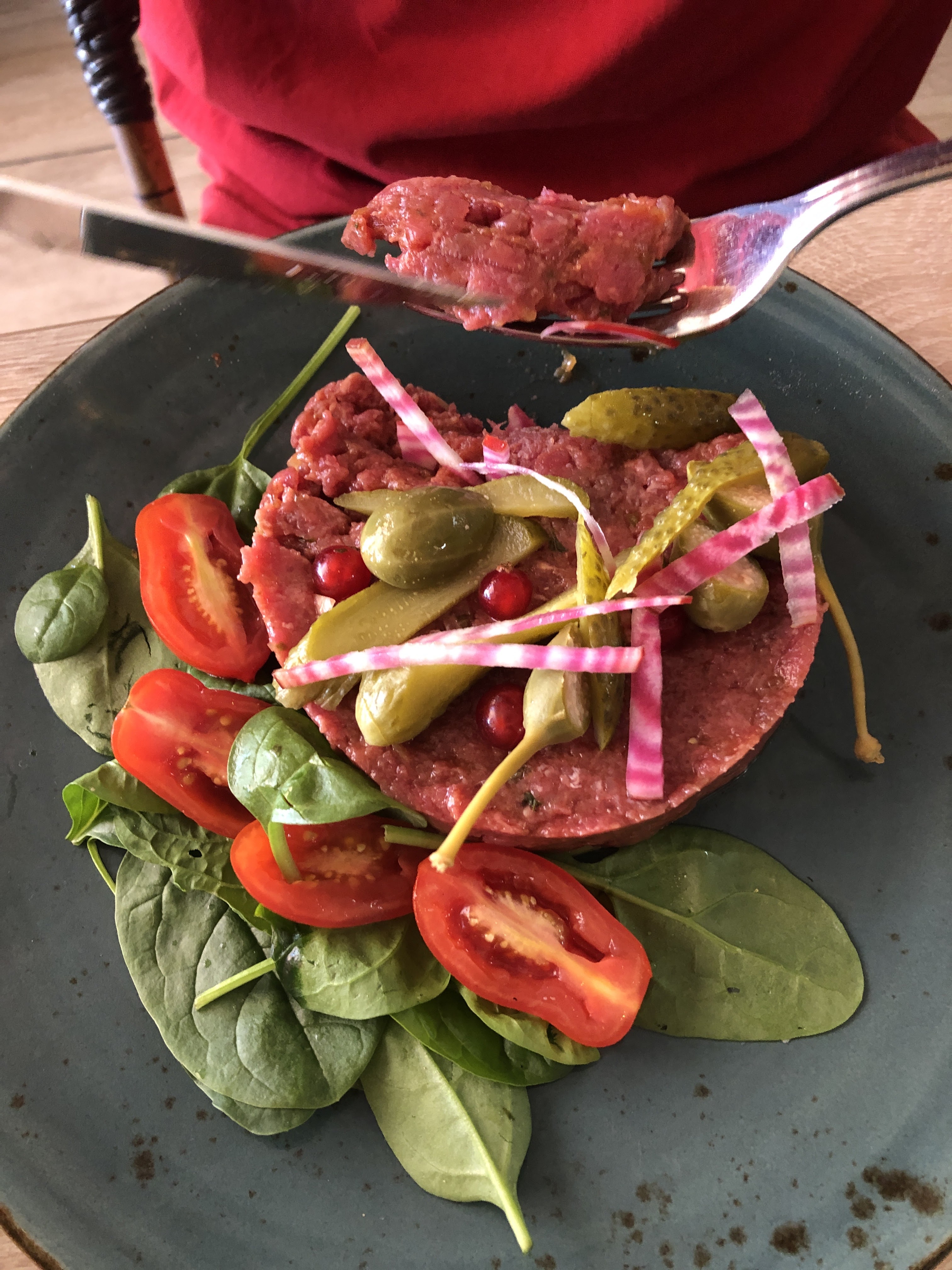 Les portions correspondent à celles d’un enfant, rendant les tarifs déjà élevés exorbitants. 19€ pour 5 quartiers de tomates sans aucun goût, du jamais vu.