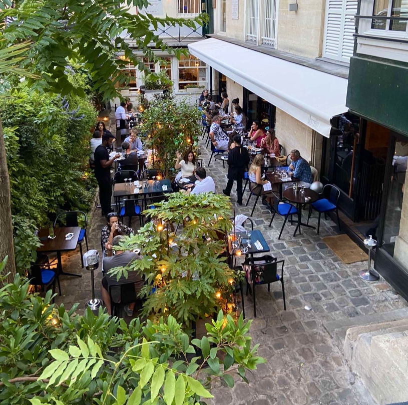 Super restaurant au calme, caché en contrebas d'un immeuble. Idéal pour couper le temps d'une pause déjeuner ! Terrasse incroyable en plein cœur de Paris. Cuisine raffinée et service au top !