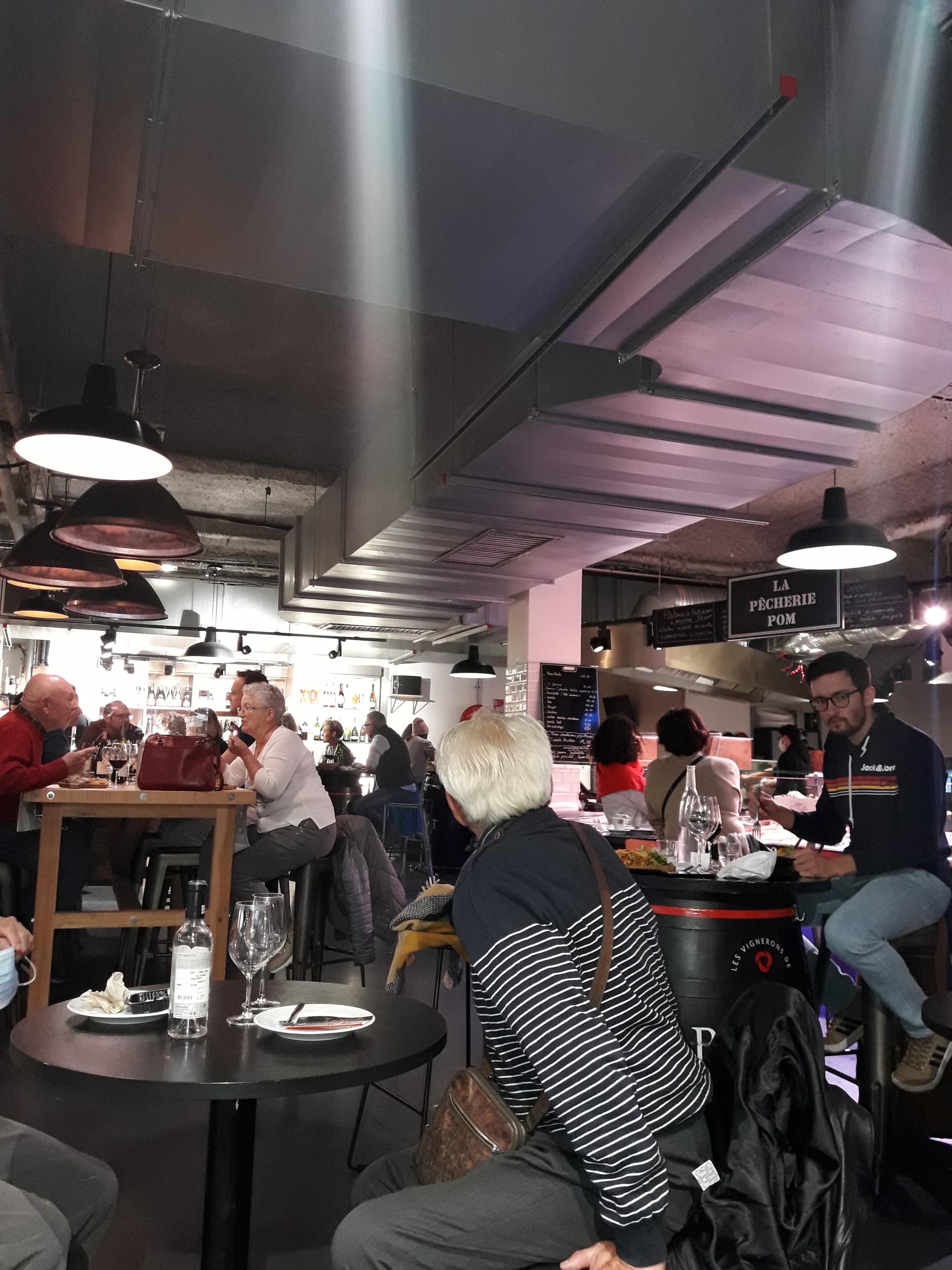 Nous cherchions un lieu pour nous restaurer et nous avons atterri dans ce marché. Il est composé de différents comptoirs offrants des plats différents de viande ou de poisson. Nous avons opté pour le poisson. Je vous recommande les tartares de saumon et de thon. Ils sont renversants. Un autre comptoir ou nous avons pris un côté de Buzet blanc. Nous avons très bien déjeuner