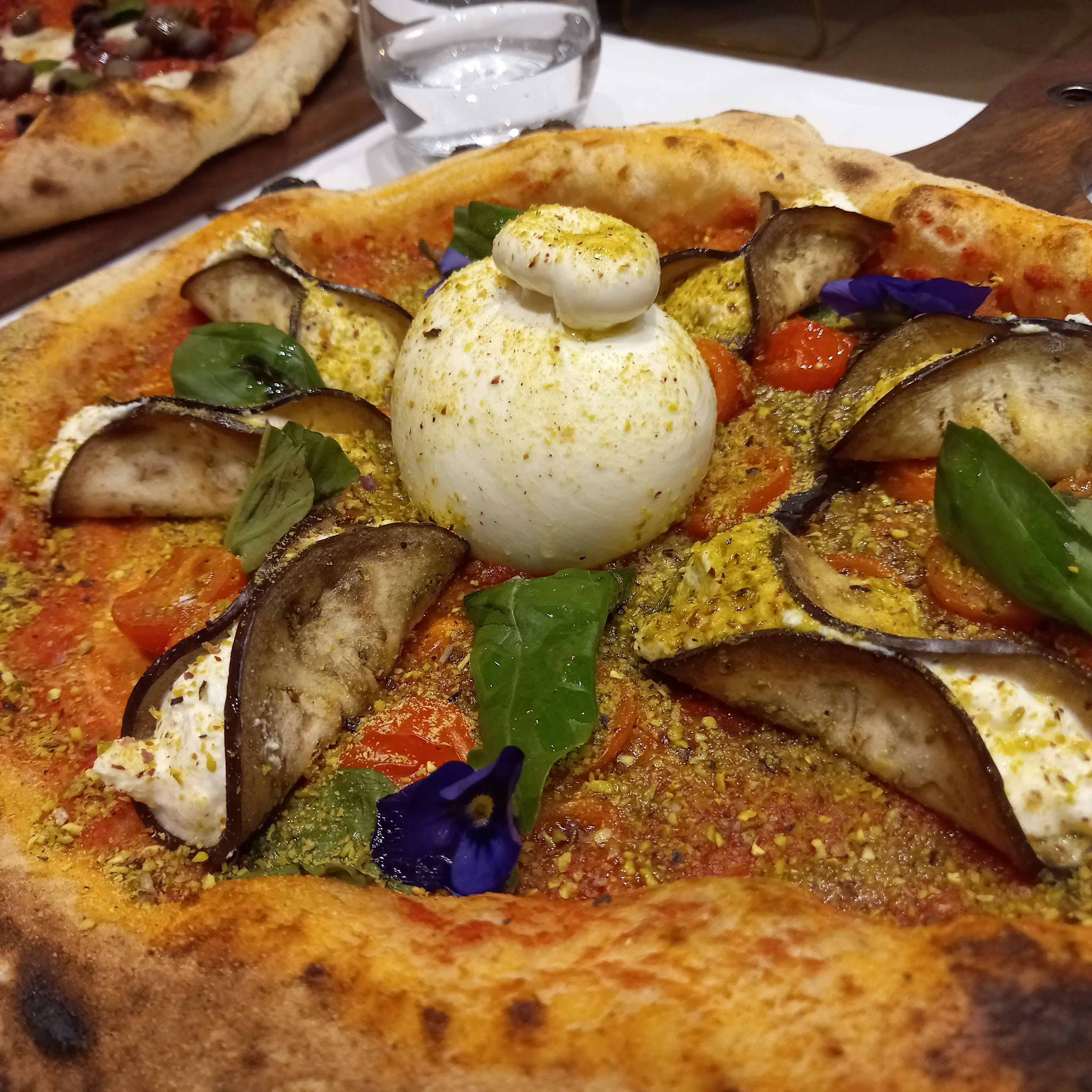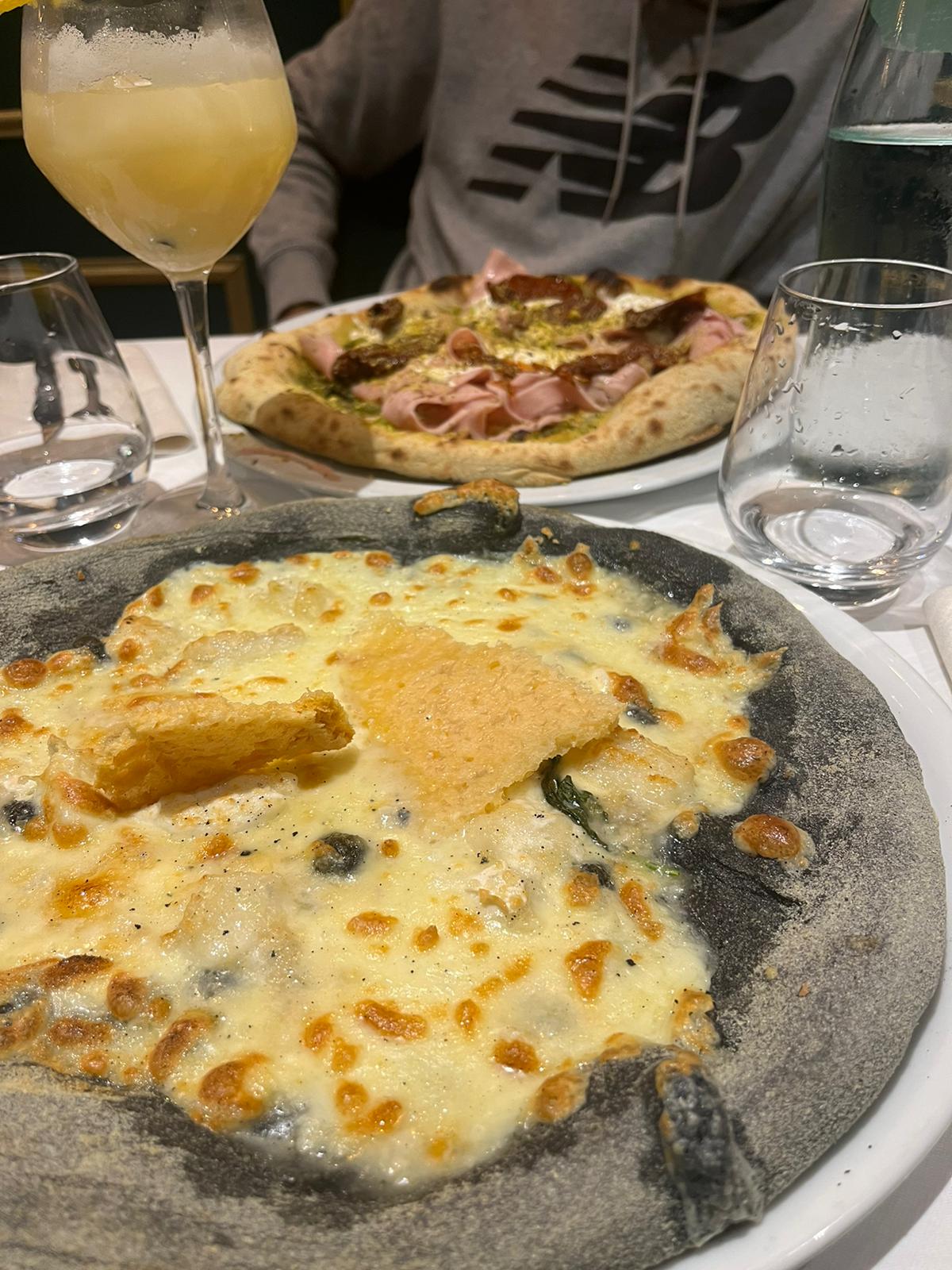 Un très bon restaurant italien comme on en trouve peu dans le secteur. La calzone est très original dans sa forme et très bonne. Petit bémol sur le blanc d'oeuf qui n'était pas cuit à l'intérieur. La Pizza aux fromages avec la pâte au charbon était une grande découverte. J'ai adoré la pâte. On sent que les produits sont frais et de qualité. Ils ont énormément de goût. Les portions sont généreuses et les pizzas très grandes ! N'hésitez pas à demander à ramener le reste de votre plat/pizza si vous ne le finissez pas, ils vous feront un tote bag avec plaisir ! Serveuse très aimable, décoration au top !