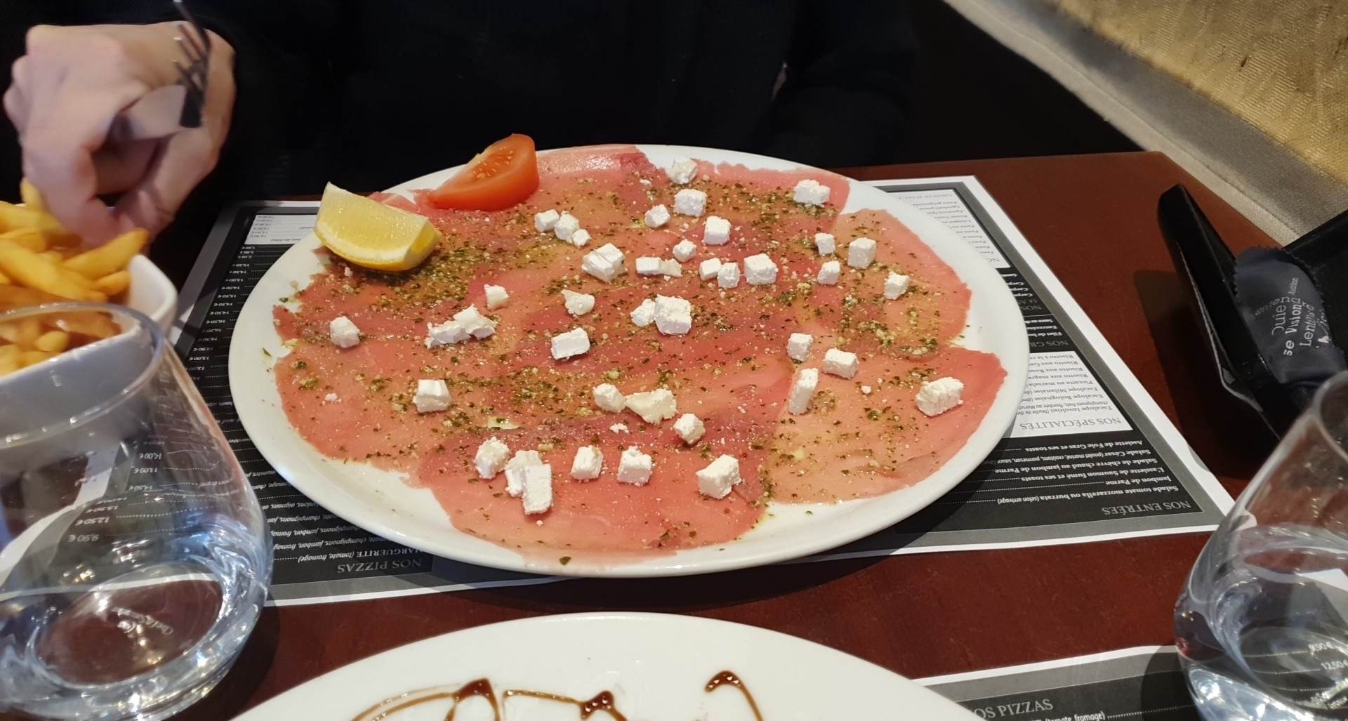 Nous avons mangé la 2 midi de suite avec ma copine. Service rapide ,serveurs aimables et souriants Plat de bonne qualité CARPACCIO 10/10 Nous recommandons se restaurant a tout le monde.