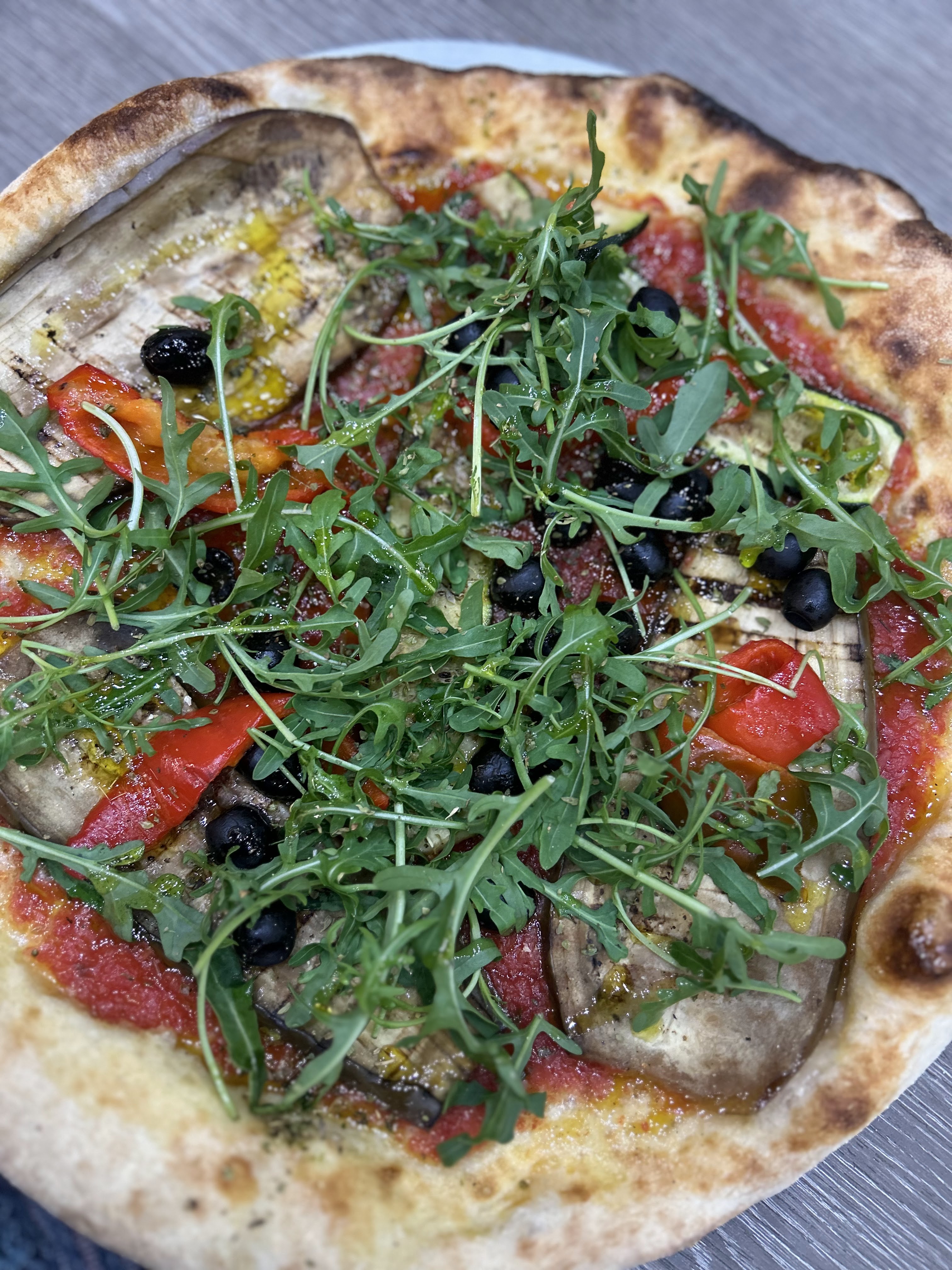 Très beau cadre pour ce restaurant italien. Pizzas cuitent au feu de bois comme il se doit. Les ingrédients sont découpés et preparés sur place. Les légumes grillés etaient gouteux et fondants. Je recommande