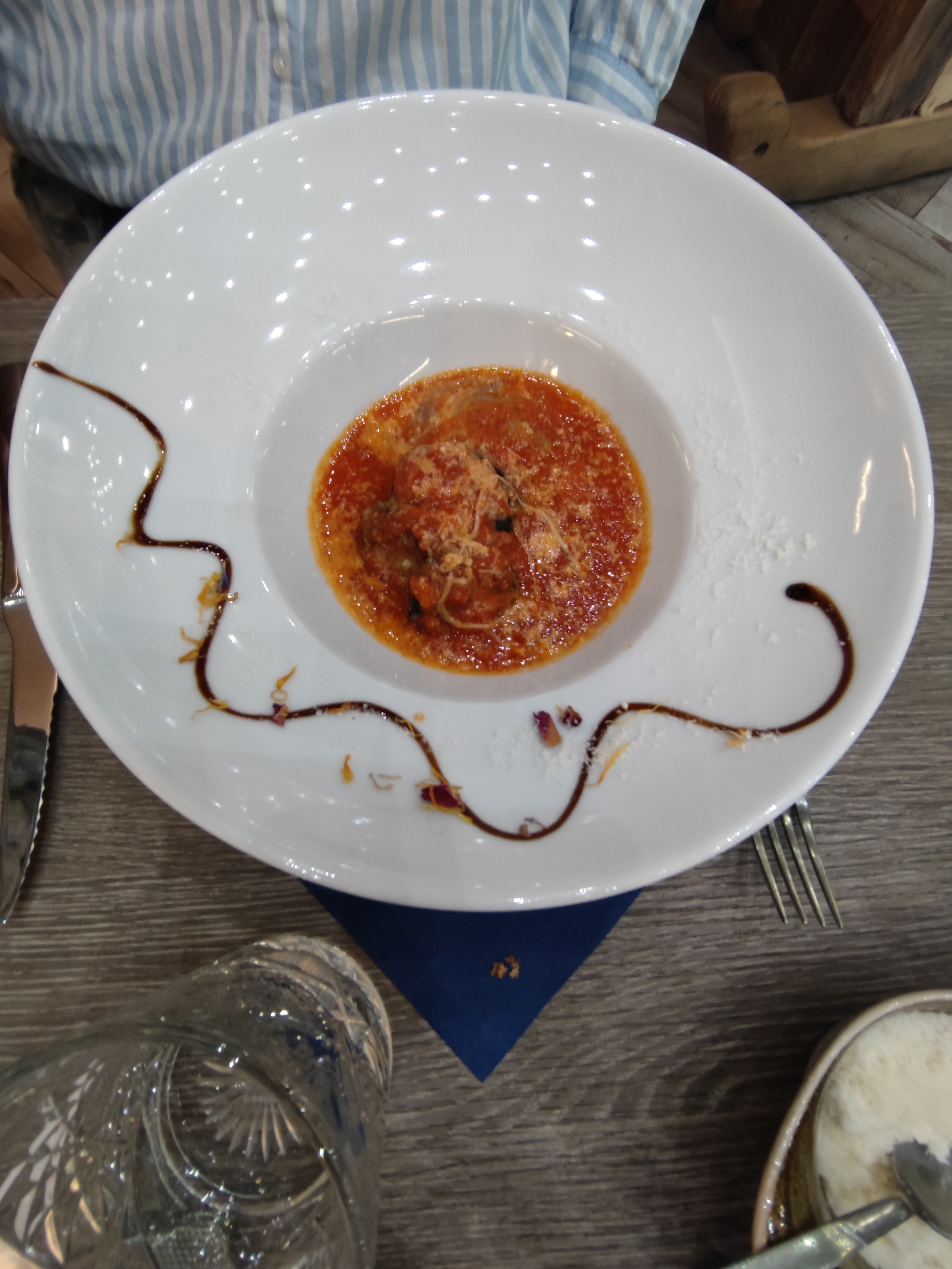 Il faut savoir refuser la nouvelle clientèle quand on est dépassé, cela évite de bâcler ceux qui sont déjà installés. Les salades ne sont pas des légumes frais, escalope milanaise avec frites ?? (Nous sommes dans un restaurant italien quand même) Impossible de changer la garniture, si sous supplément et obligé de garder les frites surgelés, bouteille commandée servis dans des gros verres à Spritz et non verre à vin, service pas génial (en même temps avec un patron de salle désagréable avec ces employés, et la surcharge de clientèle difficile de garder le sourire) Seul positif, jolie terrasse/salle