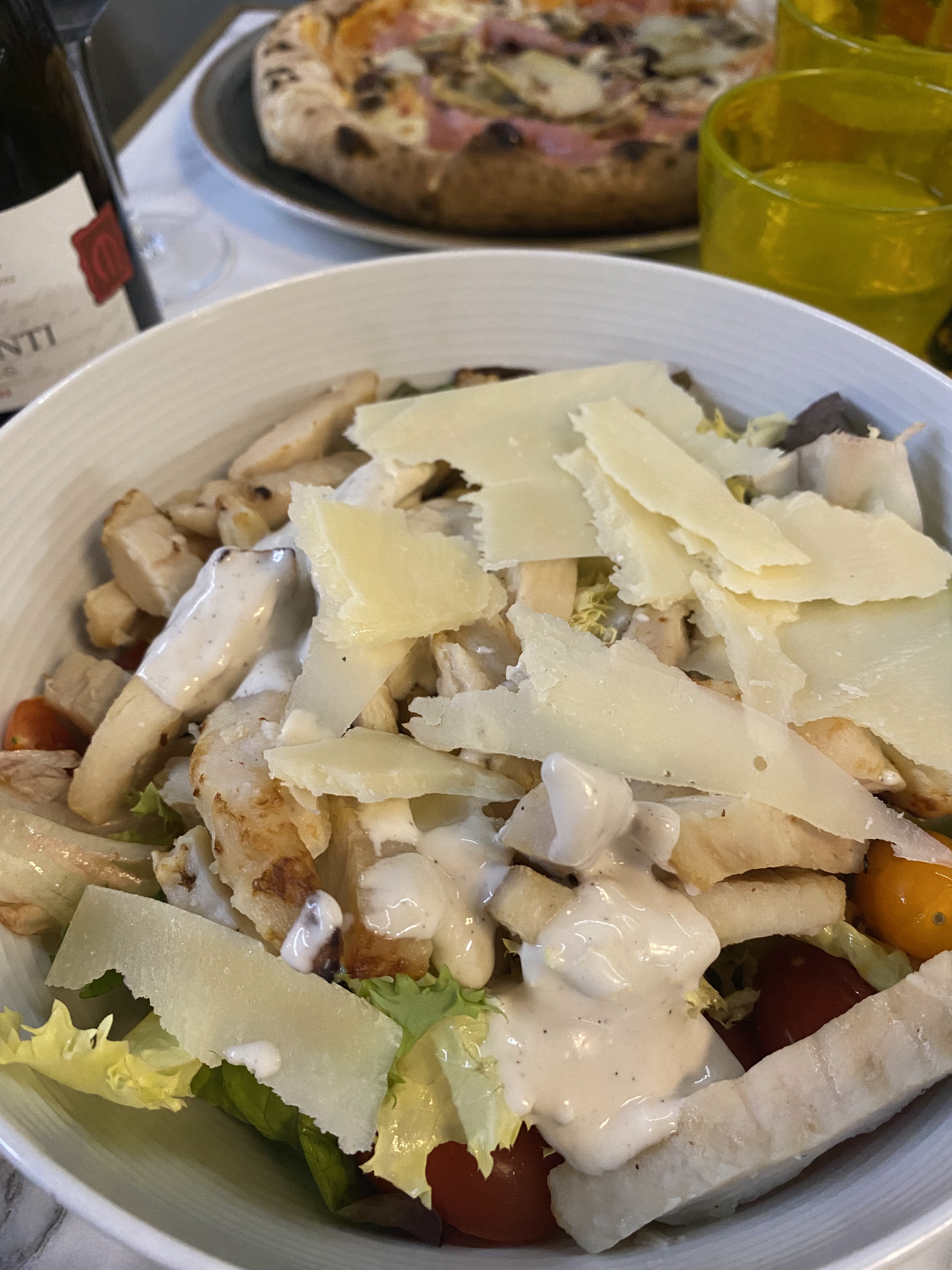 Service excellent et sympathique. La pizza est exceptionnelle si vous aimez une croûte plus épaisse. La salade César n'était pas très authentique (la sauce n'était pas César) et le poulet en salade n'était pas top. Le café était excellent. Dans l’ensemble, cela vaut la peine d’y revenir !