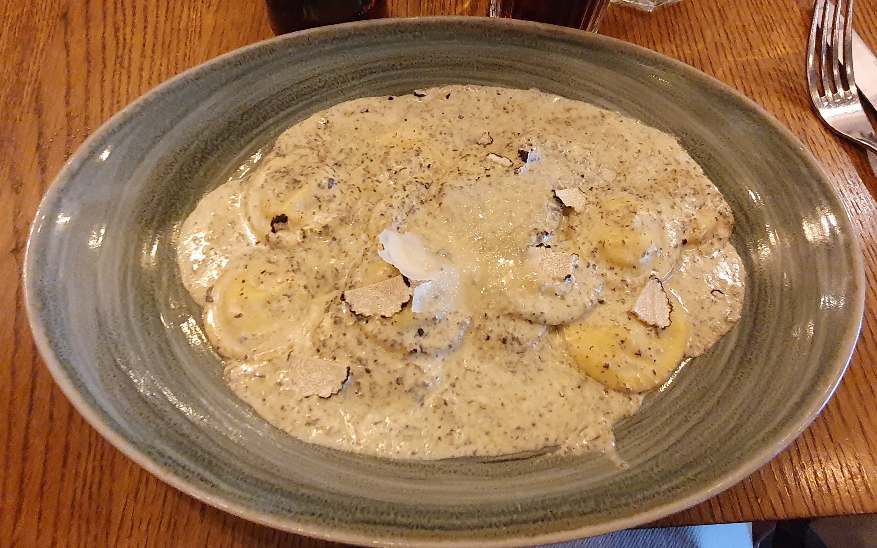 J'ai adoré le cadre, l'ambiance, les serveurs et les ravioles à la truffe que j'avais pris. Délicieux !!! Je conseille.
