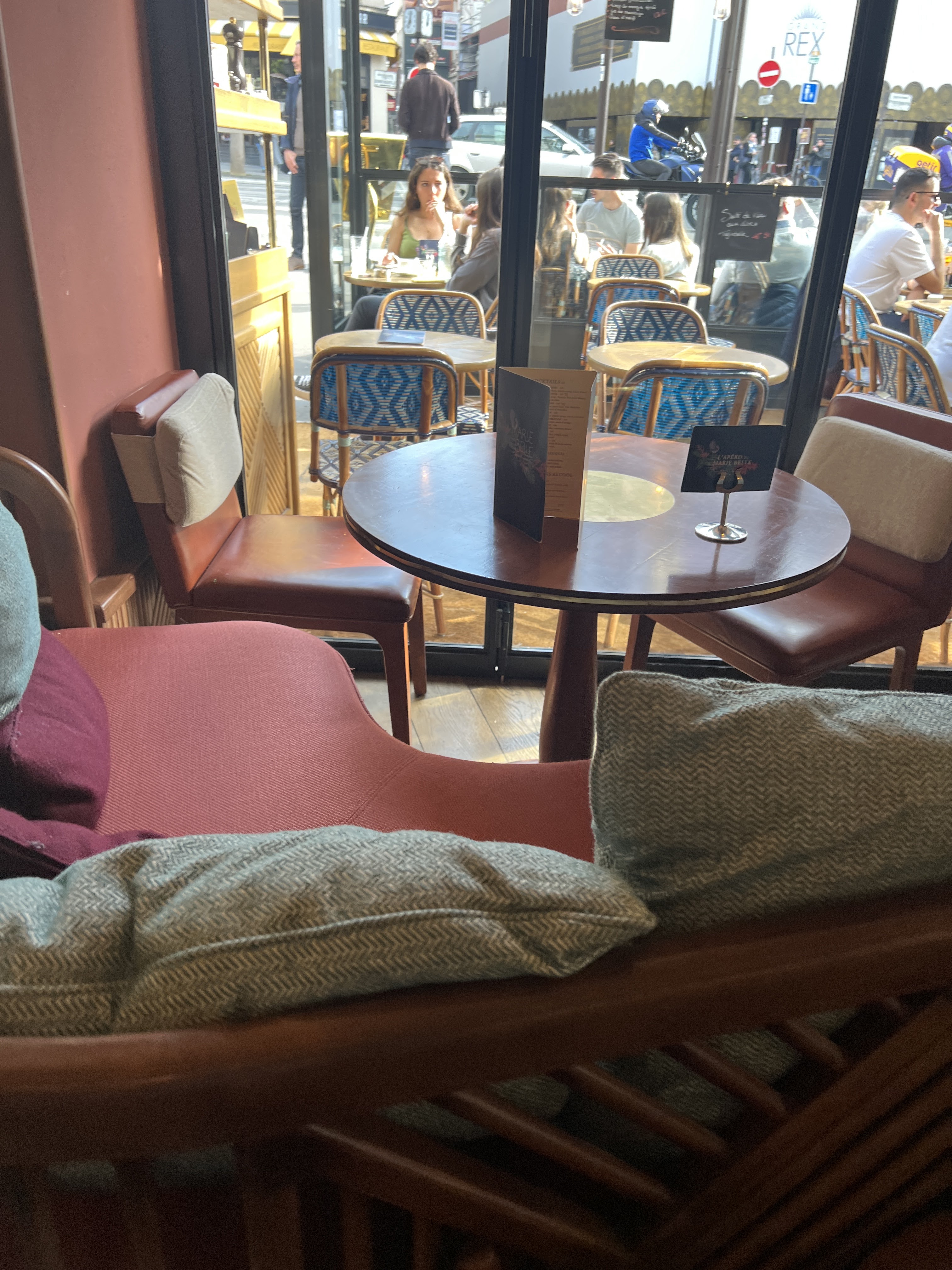 Endroit cosy pour se poser et boire un verre avec vue sur le Grand Rex ! Et puis l'équipe est adorable : nous avions besoin de filmer des vidéos au calme et le patron nous a laissé le premier étage pour nous tous seuls pendant 3h !