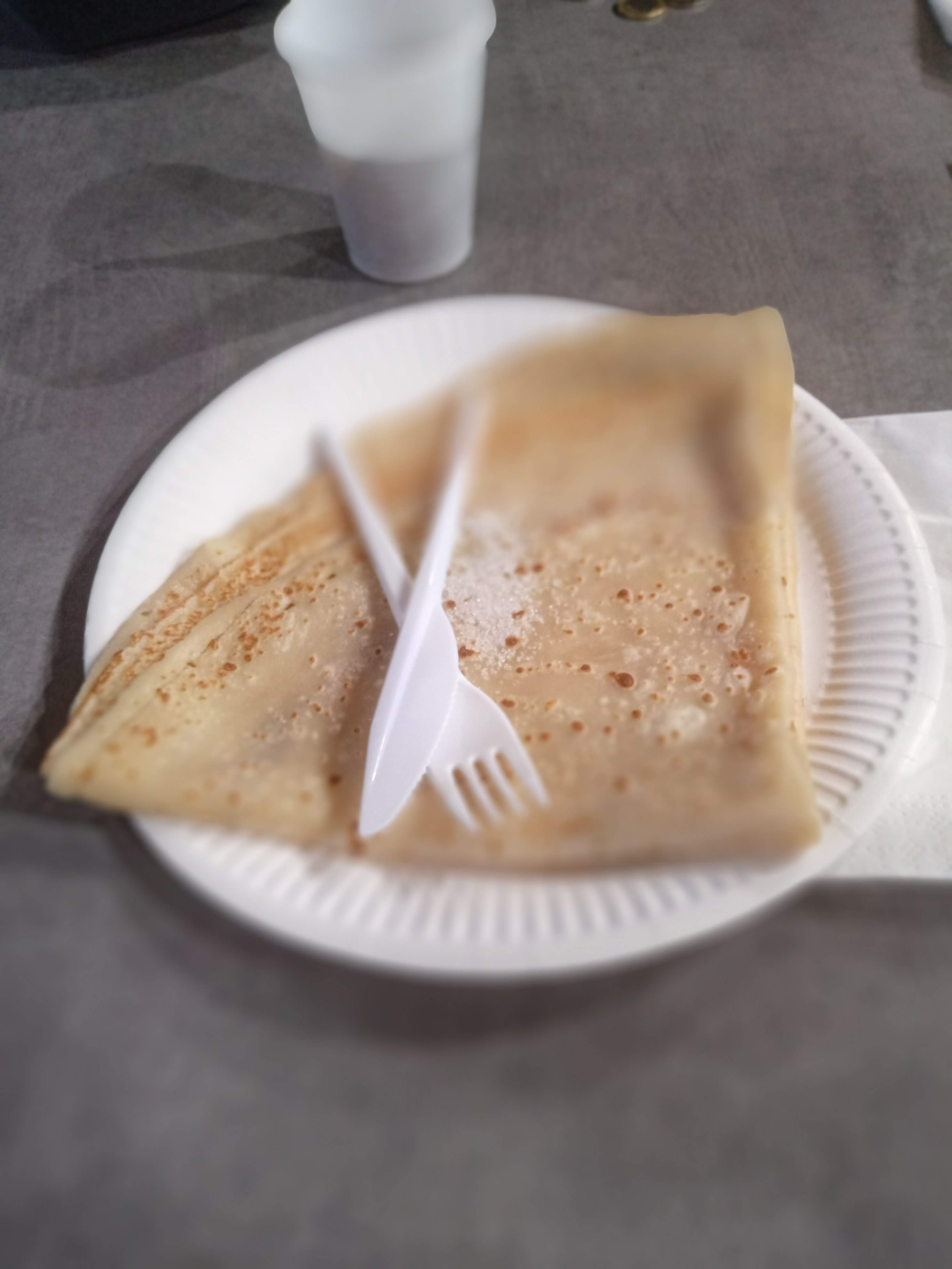 Longue attente, au millieu de la rue où tout le monde se bouscule, heureusement que la crêpe était bonne