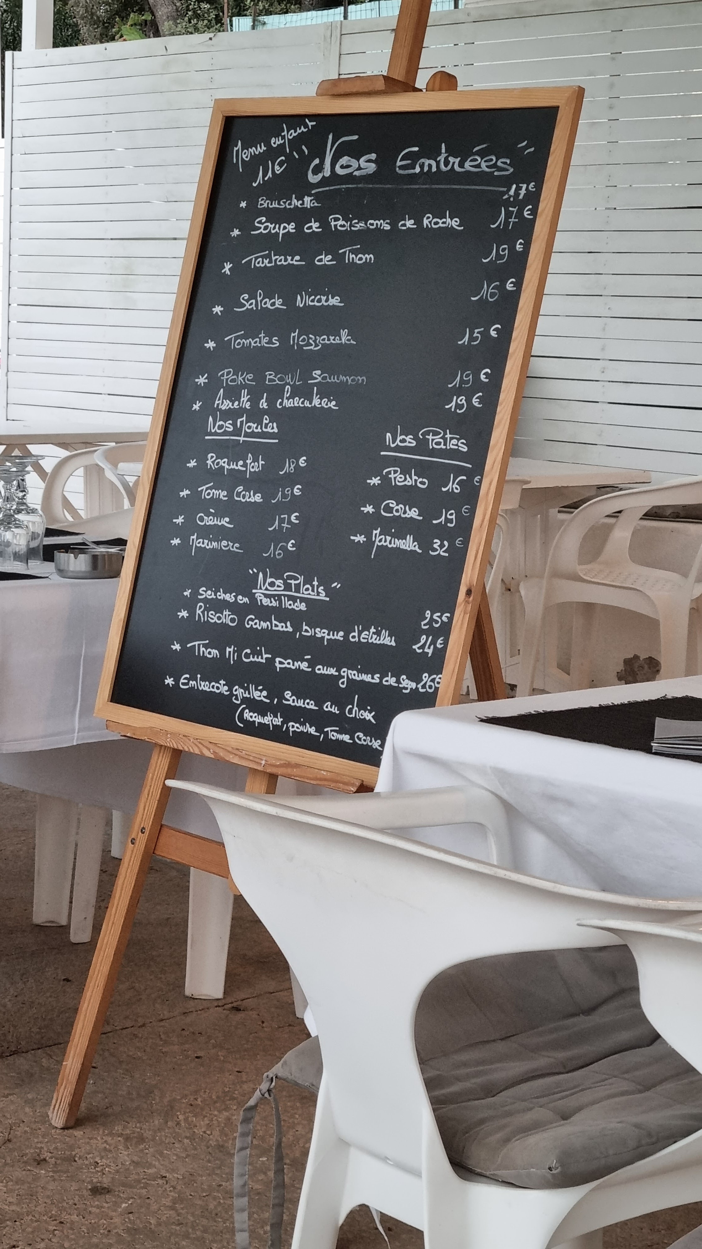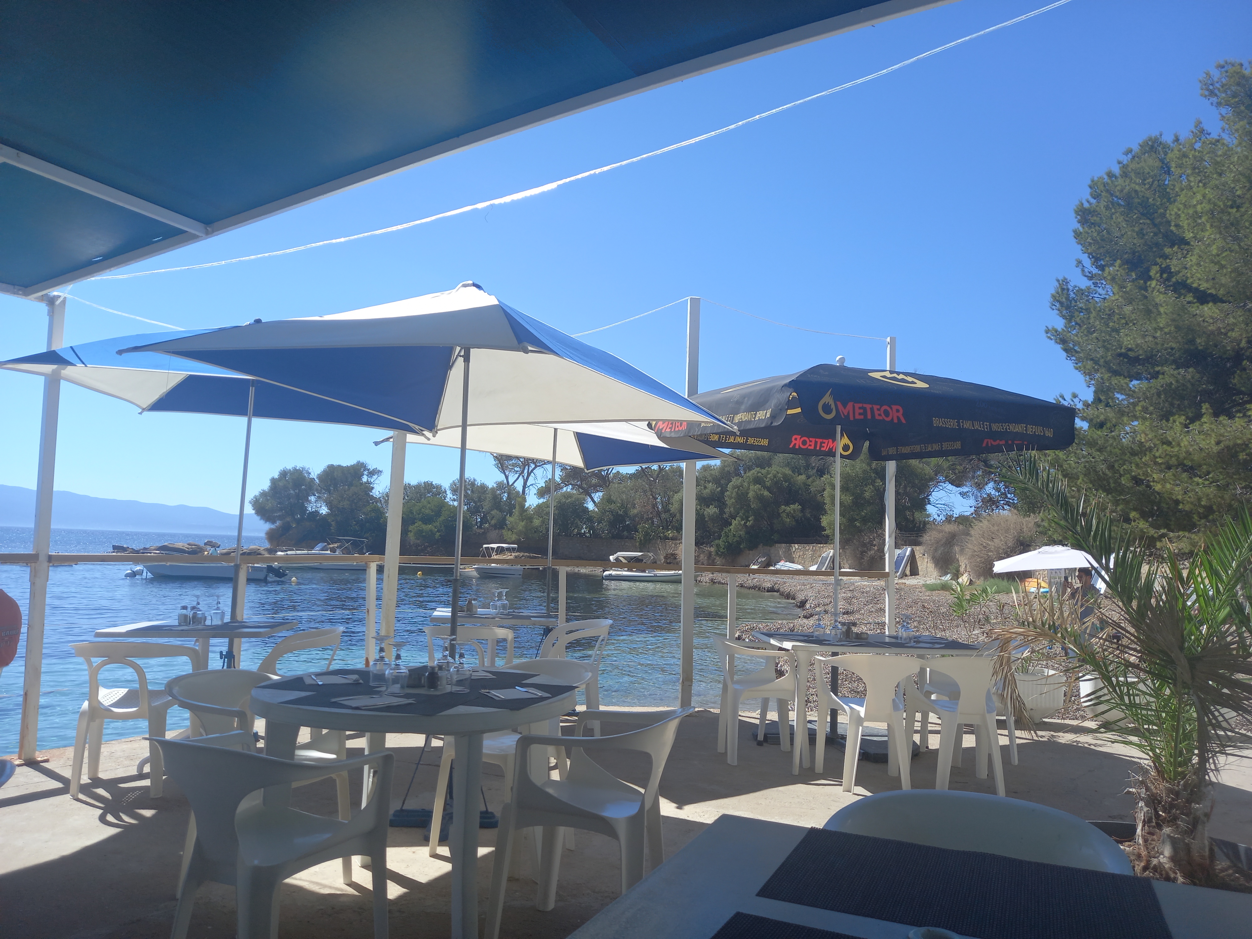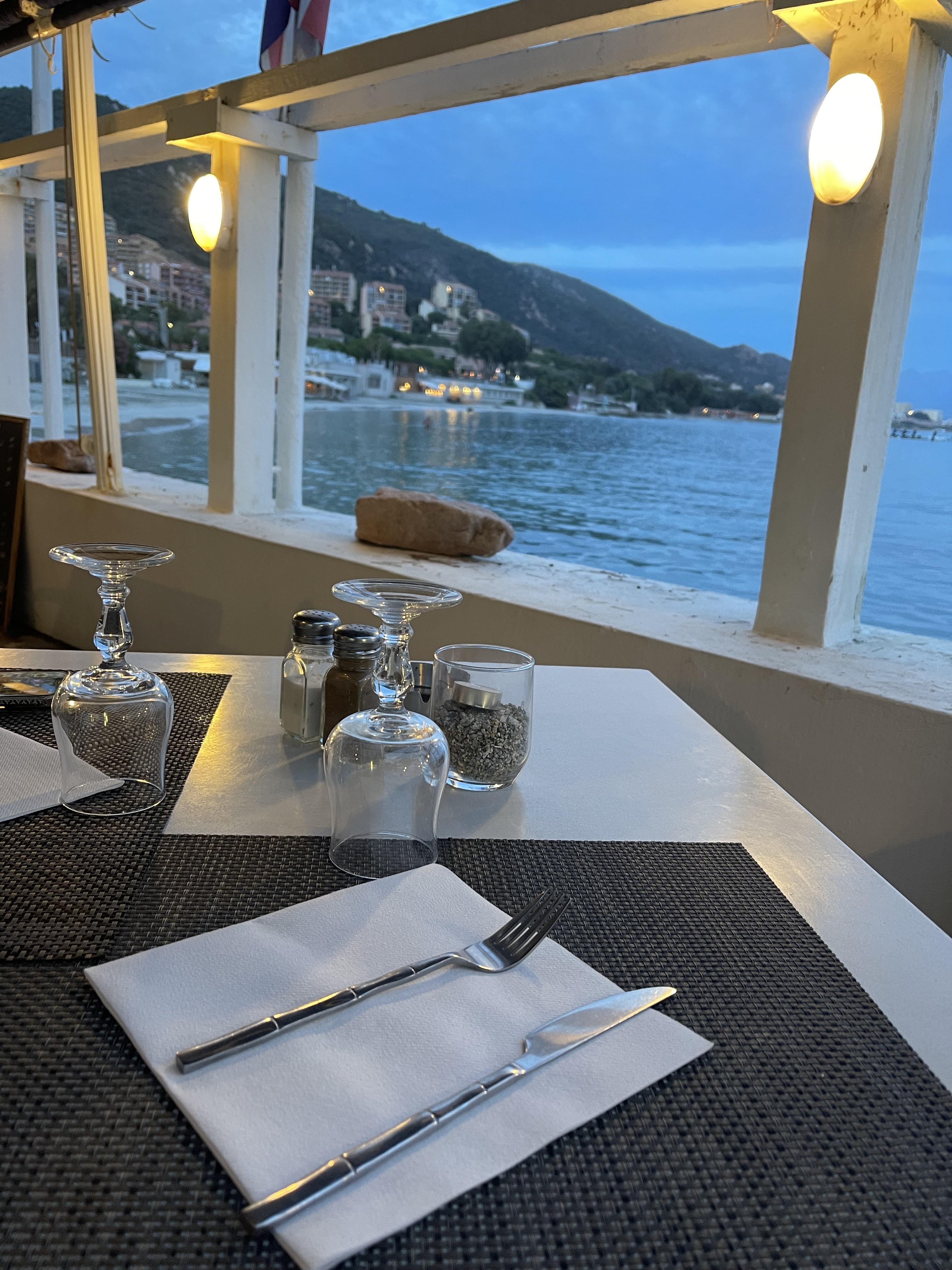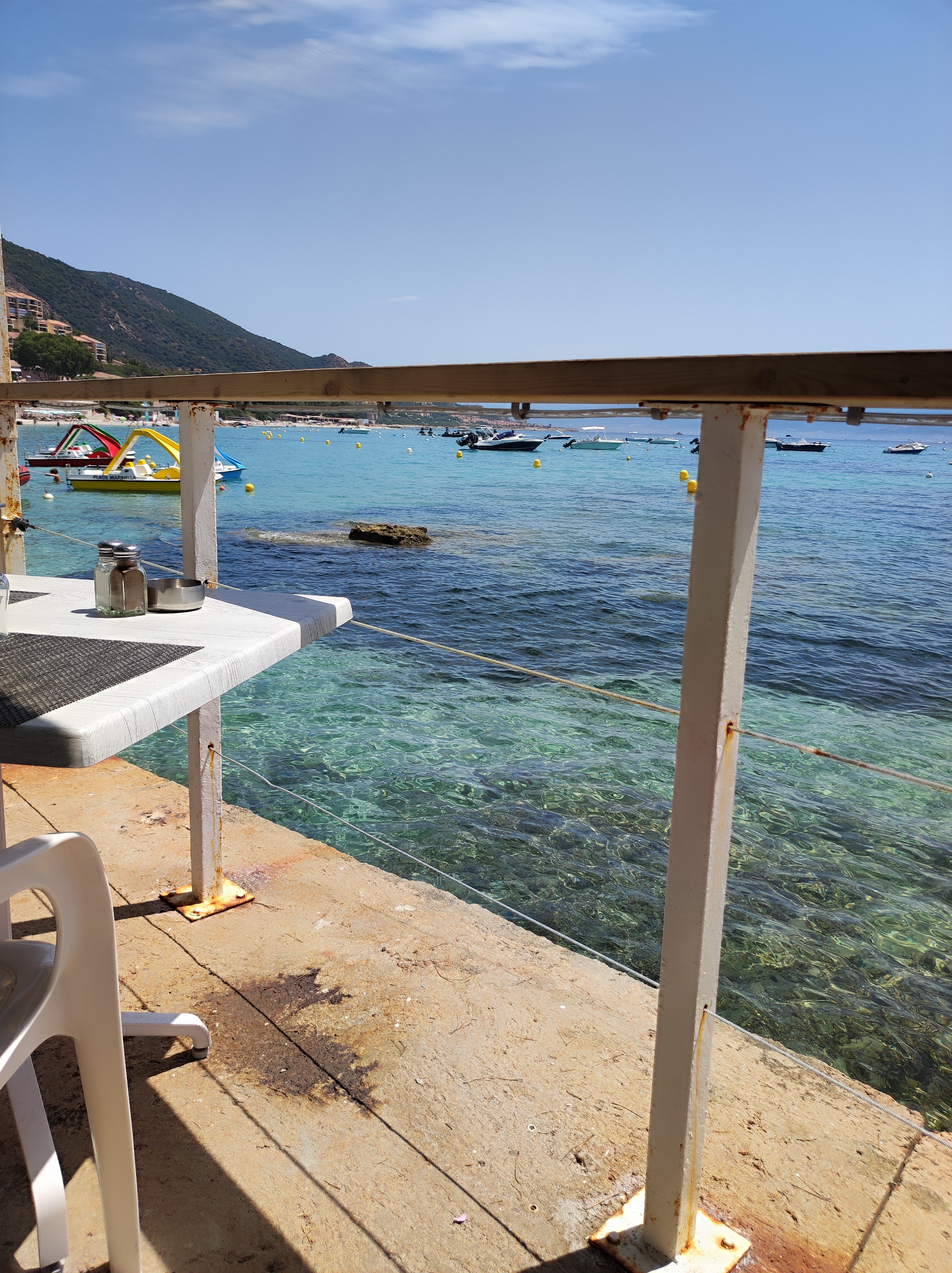 Cadre idyllique sur mer et sur la baie. Cuisine:Pâtes Corse ,délicieuses. Personnel sympathique et accueillant.