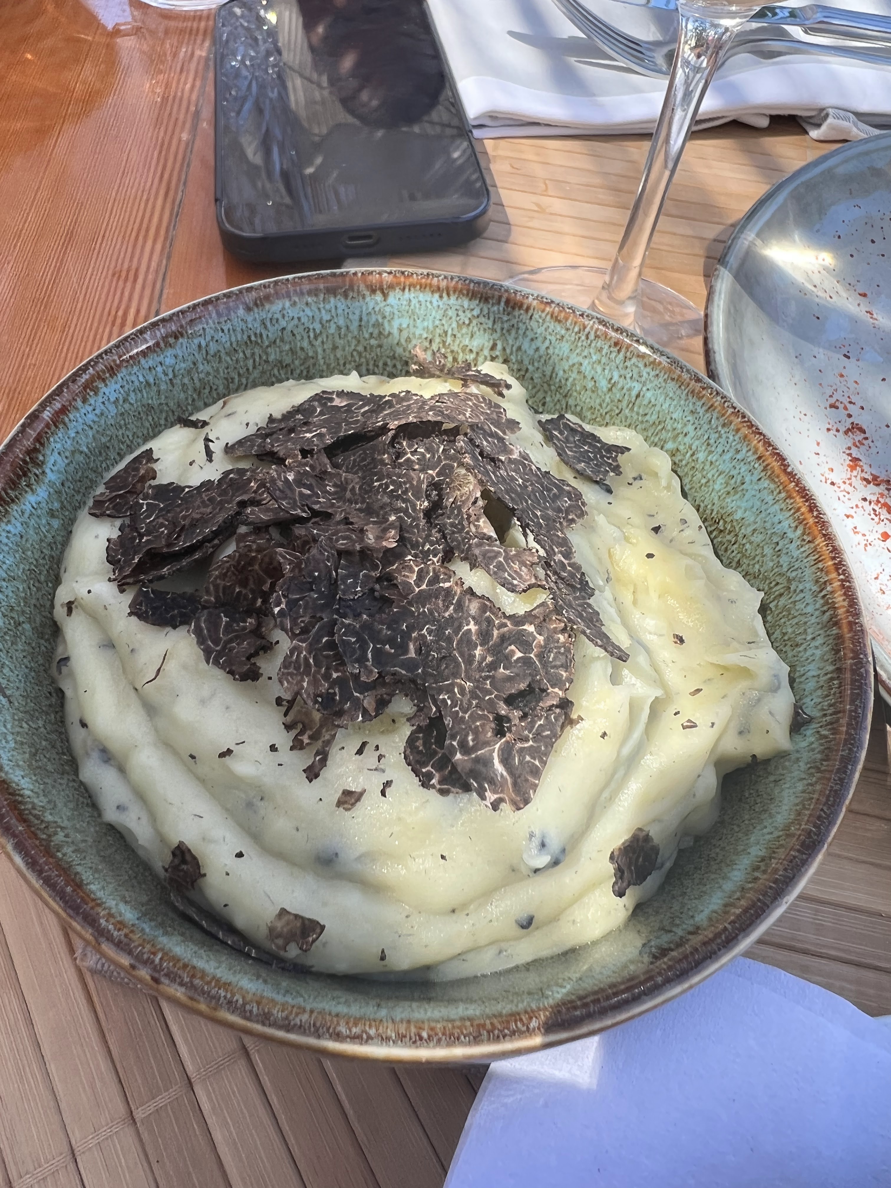 Heureusement la vue mer est belle, mais comme tous les restaurants de plage... Sinon la cuisine n'a rien d'extraordinaire, produits non travaillés, cuits et assaisonnés correctement. Mais 120 € la dorade grillée pour 2 personnes, c'est juste 2 fois trop cher et 2 fois plus cher que dans n'importe quel restaurant de plage. Pareil pour les autres plats. 290 € pour 2 pour une entrée et un plat simples et une bouteille de vin correcte, c'est hors de prix. Et en plus on a attendu longtemps avant d'être servis !