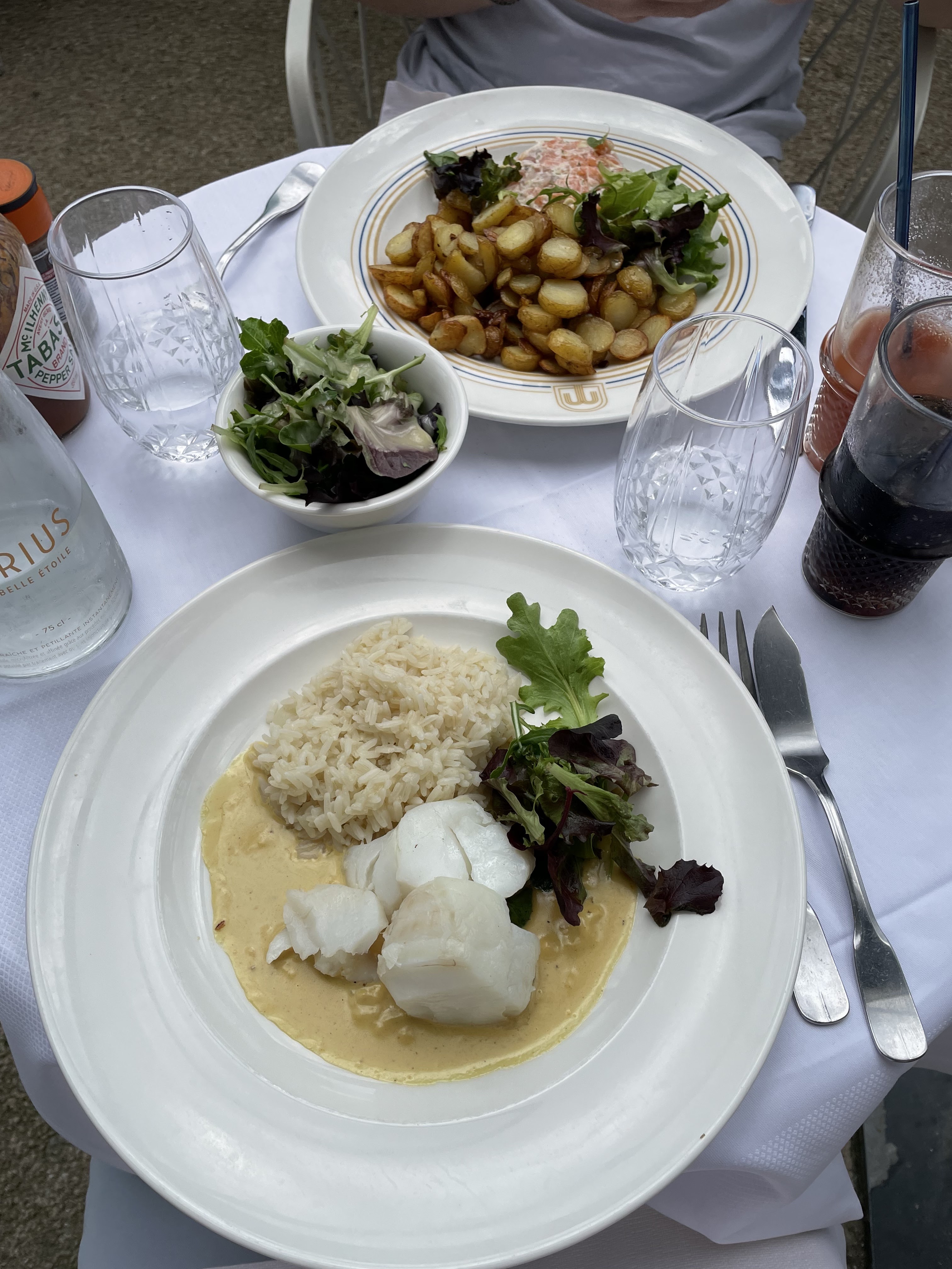 La terrasse est agréable quand il fait chaud …mais s’il y avait un coin fumeur et non fumeur. On aurait mieux apprécié notre repas. Le cabillaud en dîner avec une salade verte et une sauce froide à laisser mon mari sur sa faim. Ce plat est à revoir. Par contre, L’aile de raie était très bonne.