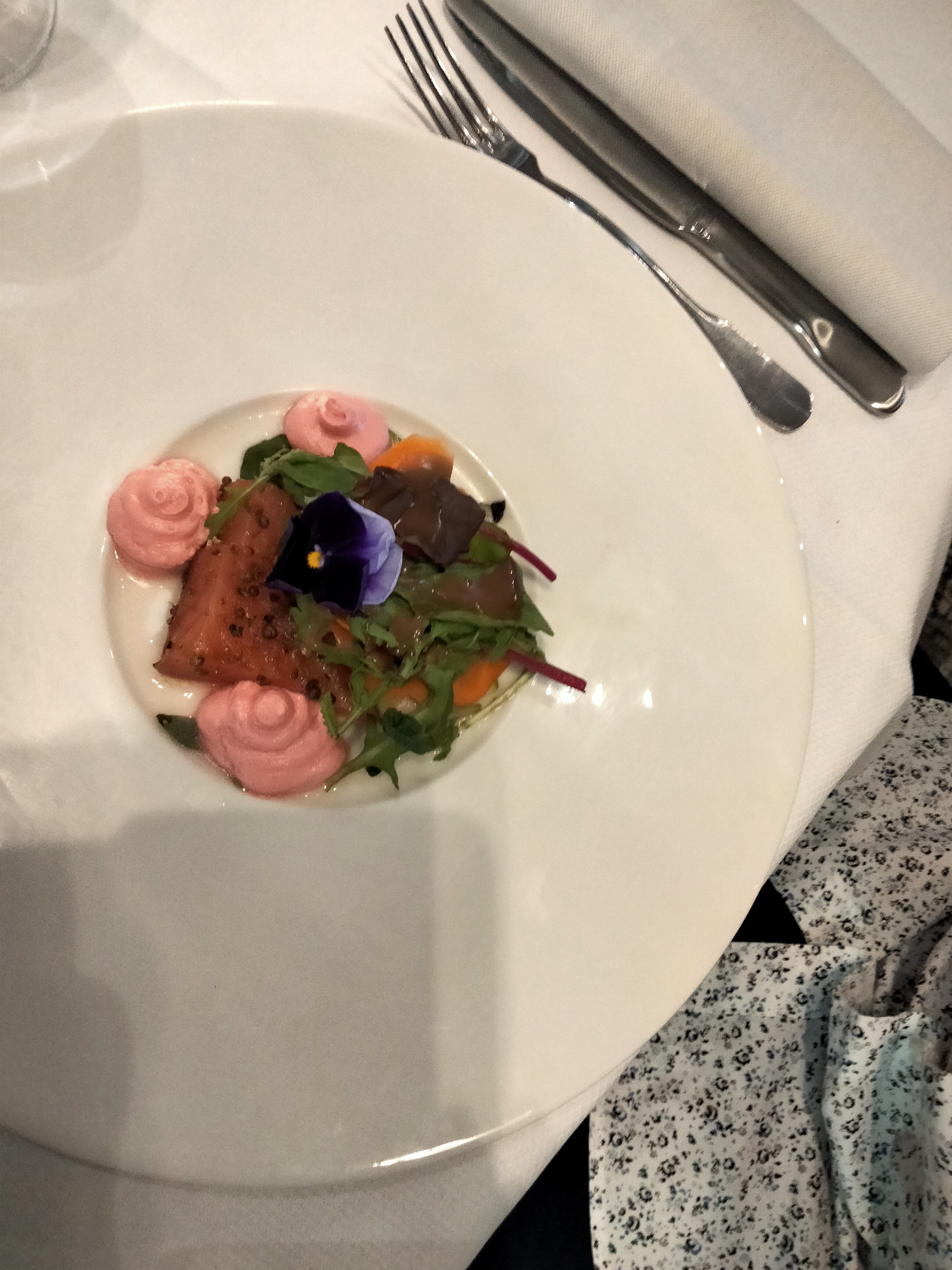 Beaucoup de chichis pour pas grand chose dans ce restaurant. On a l'impression d'arriver dans un gastronomique et bien loin de là... Que dire du serveur qui repousse le plateau à pâtisseries dans le frigo avec sa chaussure !!! 😱