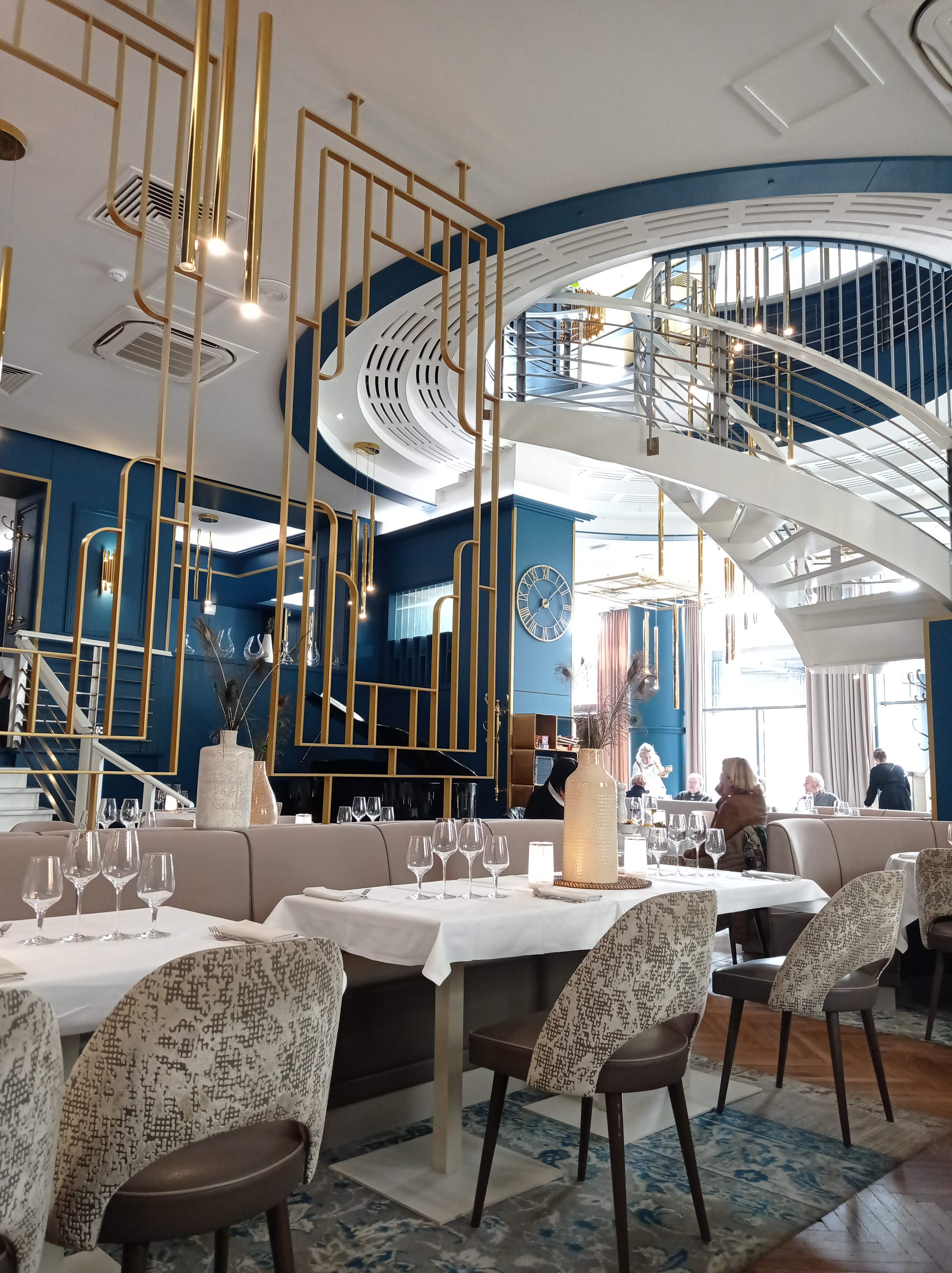 Restaurant qui se démarque par son intérieur style grands magasins de Paris qui ne demande qu'à être visité. La vue sur les cuisines et sa brigade qui s'active me plaît beaucoup. Leurs cartes (plats, boissons, ...), comme l'équipe en salle sont à l'image du cadre. Nous avons affaire, à mon avis, à un établissement ayant un grand respect du client, par son travail bien fait. A éprouver dans le temps ...