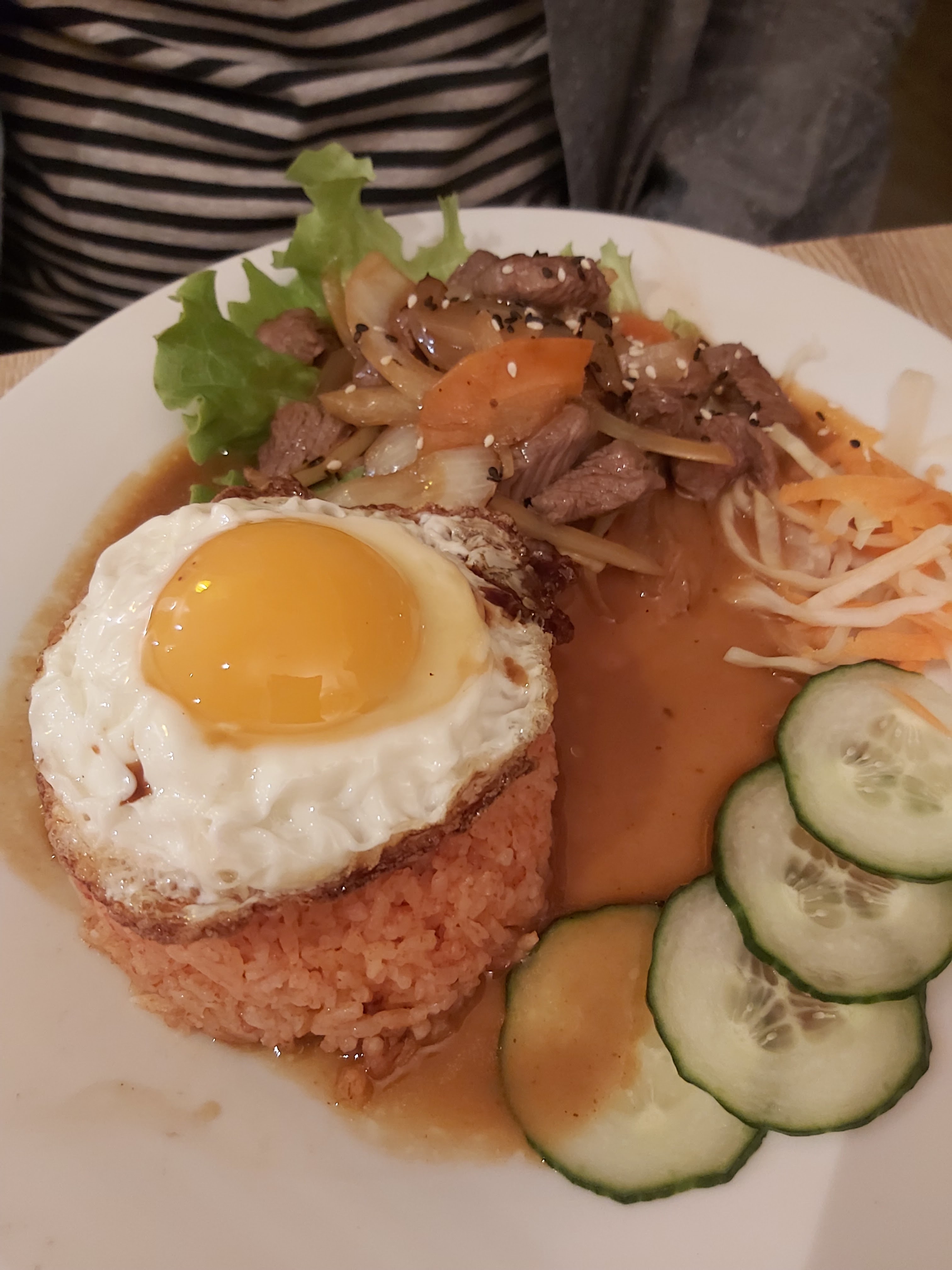 Les serveurs étaient très gentils et très serviables. Les plats étaient plutôt bons et les prix assez raisonnables. La salade n'est qu'un bo bun sans pâte mais autrement c'était assez varié. En revanche pour les cocktails ce n'est pas le fort de la maison. Nous avons demandé un mojito et ils s'étaient trompé en inversant sel et sucre, et quand on a demandé à changé le suivant était beaucoup trop sucré.
