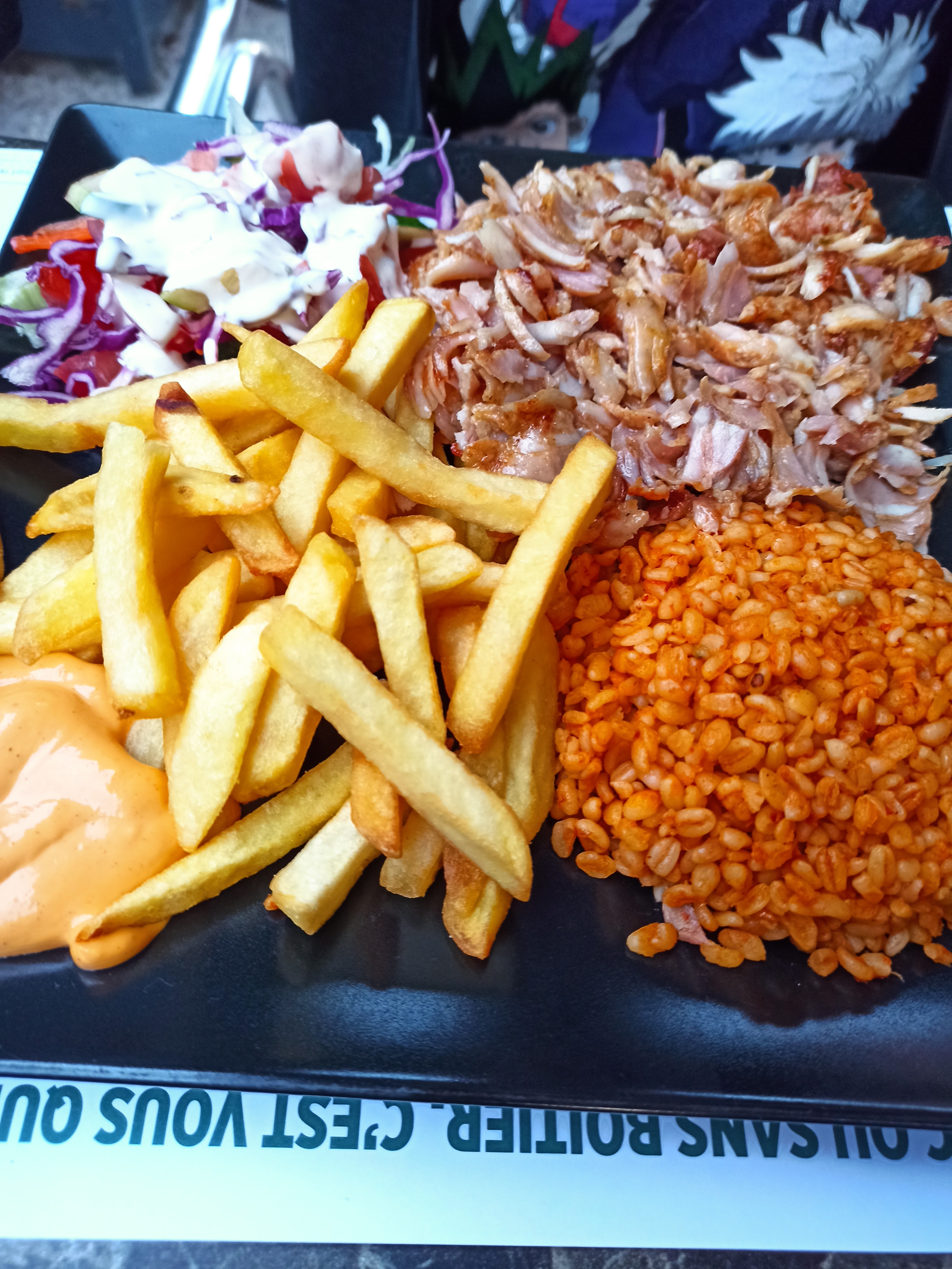 Accueil sympathique. Service rapide. Frites et kebab savoureux.