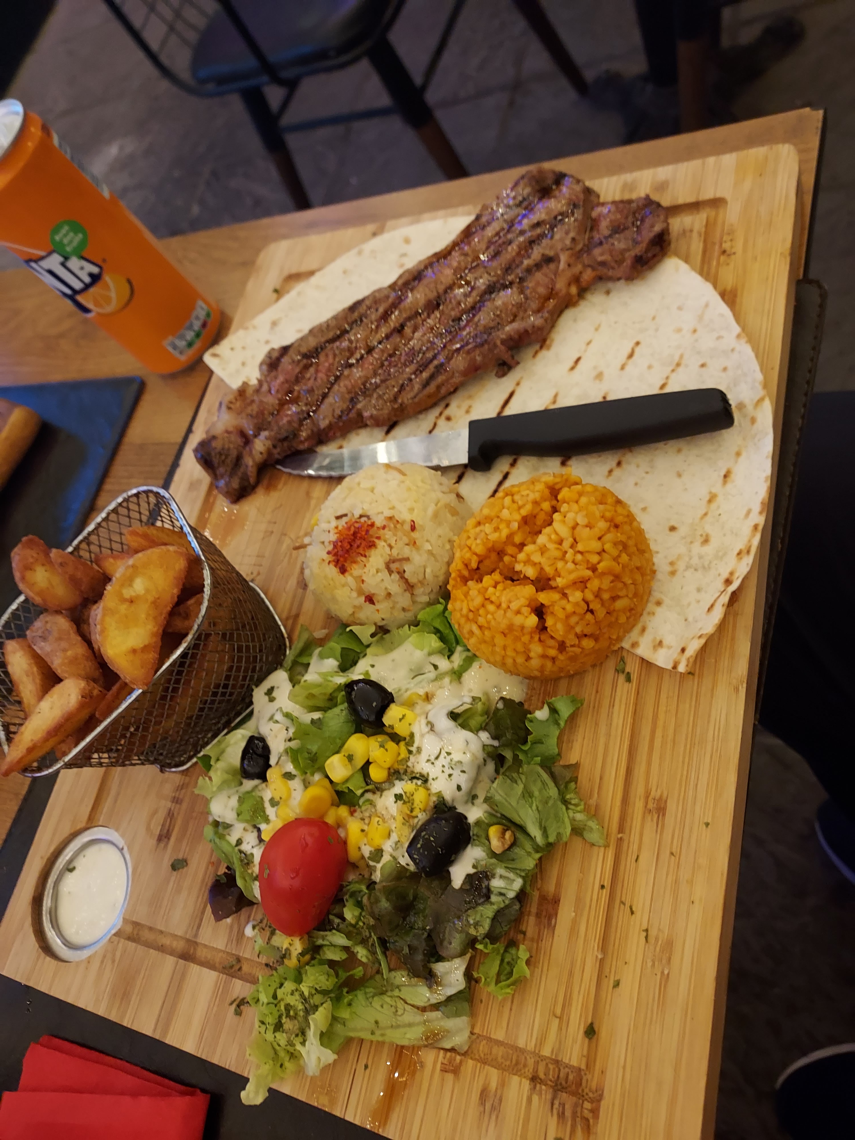 A FUIR !!!! Accueil catastrophique, au bout de 15 minutes, j’ai du chercher moi-même les cartes puisqu’on nous avait oublié!Restaurant qui vend du rêve pas sa « belle décoration », le restau est beau de loin mais très loin d’être bon ! A commencer par le pain qui était des morceaux de panini grillé ! Le riz et le blé très sec !!!! Et le pire les brochettes Adana de qualité médiocre ! Une texture faux steak surgelé premier prix ! Honteux pour un restaurant de grillade !