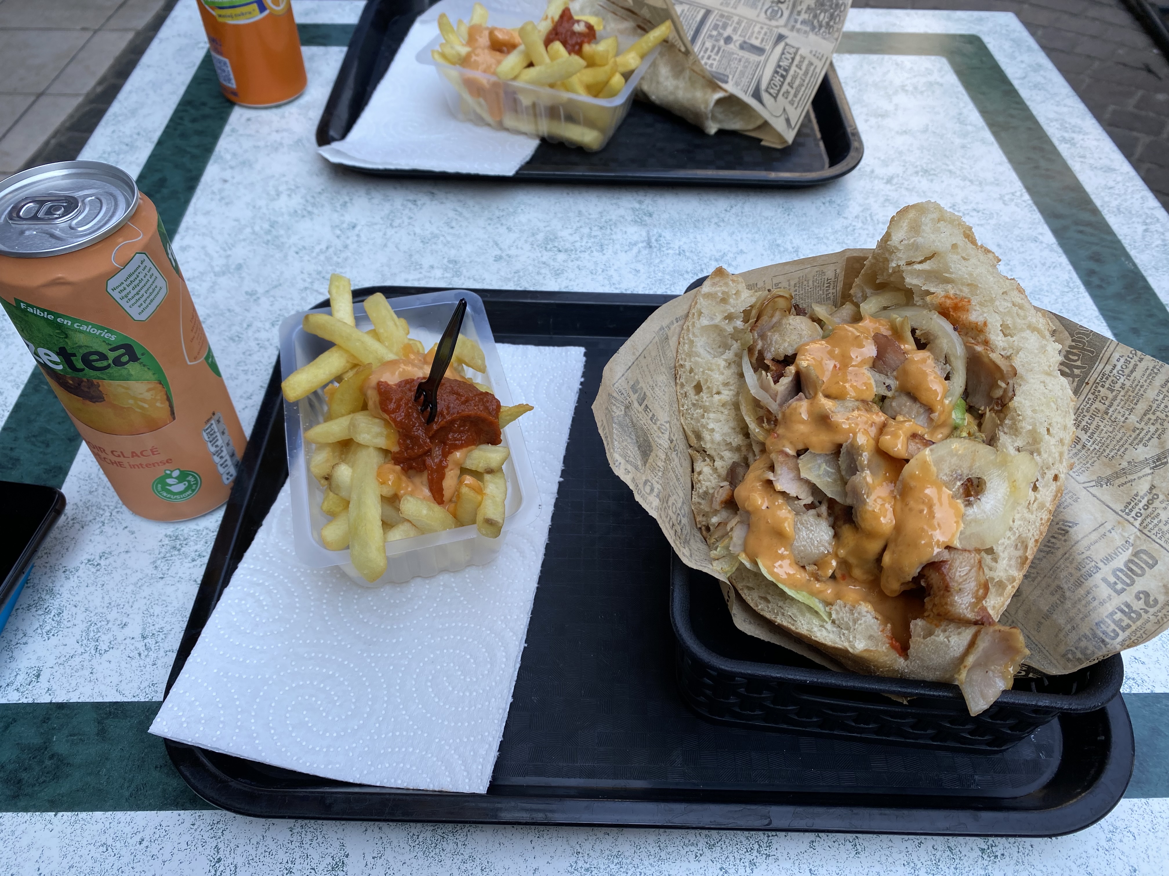 Trop d'épices différentes dans les sandwichs et les sauces ne sont pas top. Patron accueillant quand même