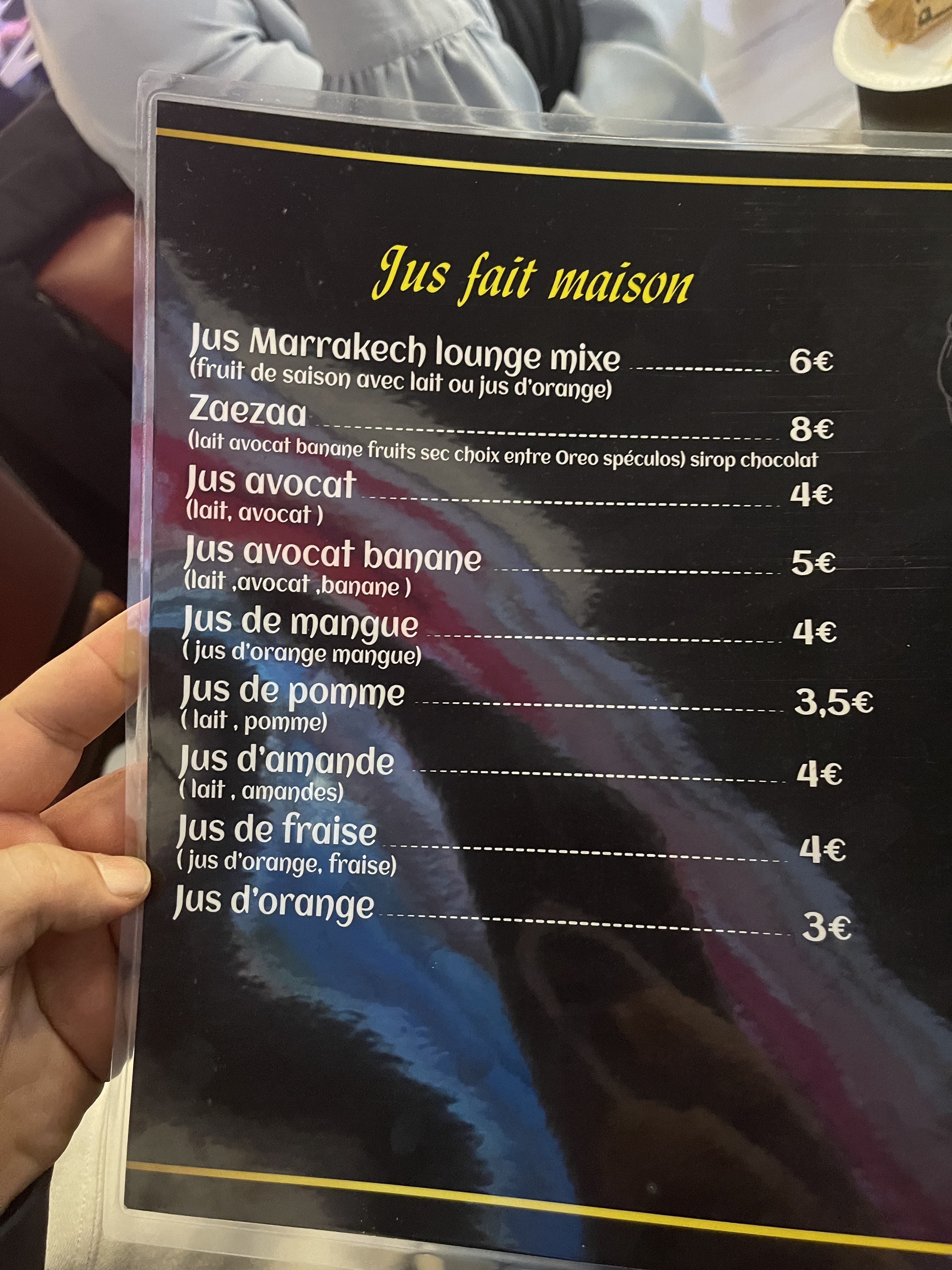 Bonjour, Nous sommes allés au Marrakech Lounge en famille ( adultes et enfants). Le restaurant est beau et accueillant et le service rapide. La serveuse est arrivée très vite après la présentation des menus. On avait pas encore eu le temps de s'installer🤪. On a prit deux formules avec un toast et des boissons ( une boisson chaude, un jus et une bouteille d'eau) à 13 euros par personne. Les enfants ont pris un msemen par personne et le nutella est facturé en plus à 1 euros par petit étui. On est déçu de ne pas avoir eu d'amlou et ce qui est écrit sur la carte. Sans doute, on n'a pas compris le concept du petit-déjeuner !🤔🤔