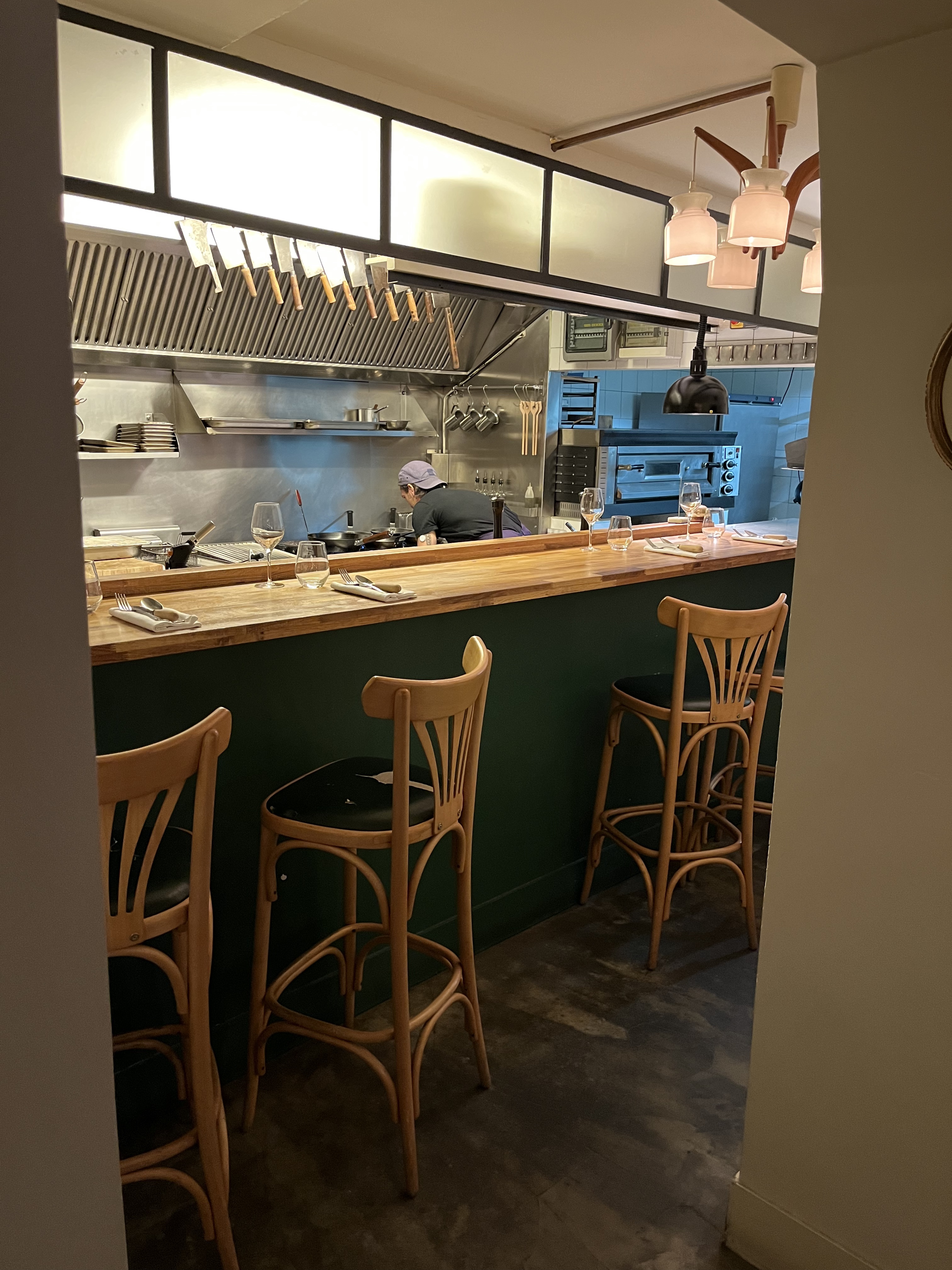 Je suis allée dans ce restaurant pour le diner et on a adoré. On a mangé au comptoir, très agréable, le comptoir a assez d’espace pour être bien, donc ambiance sympa sur la cuisine ouverte. Les plats étaient délicieux et originaux, et avec des quantités généreuses pour leur concept “gros tapas”. Le service, assurés par le chef ou son associé en salle est simple et très agréable. Bonne déco. On s’y s’en bien et on passe un bon moment, je recommande.