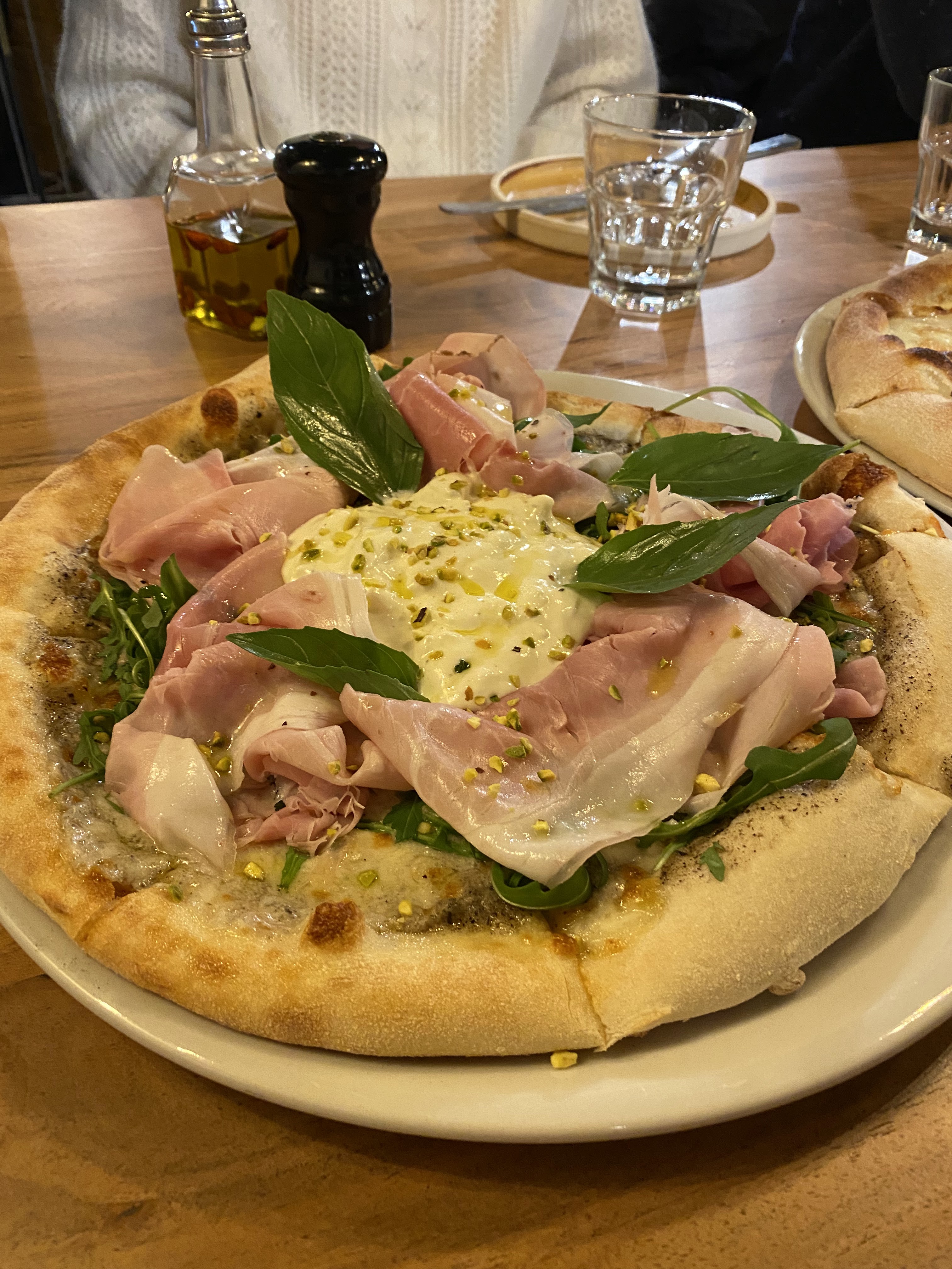 Pizzas délicieuses 🍕 Service attentionné et agréable dans une ambiance conviviale. Le restaurant est très beau également ! Sur la photo la pizza à la truffe 🥰